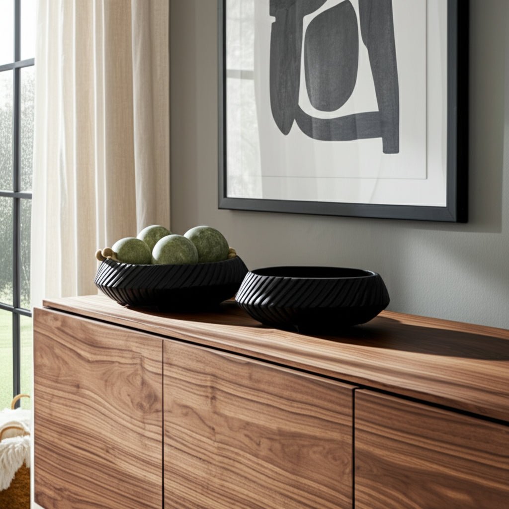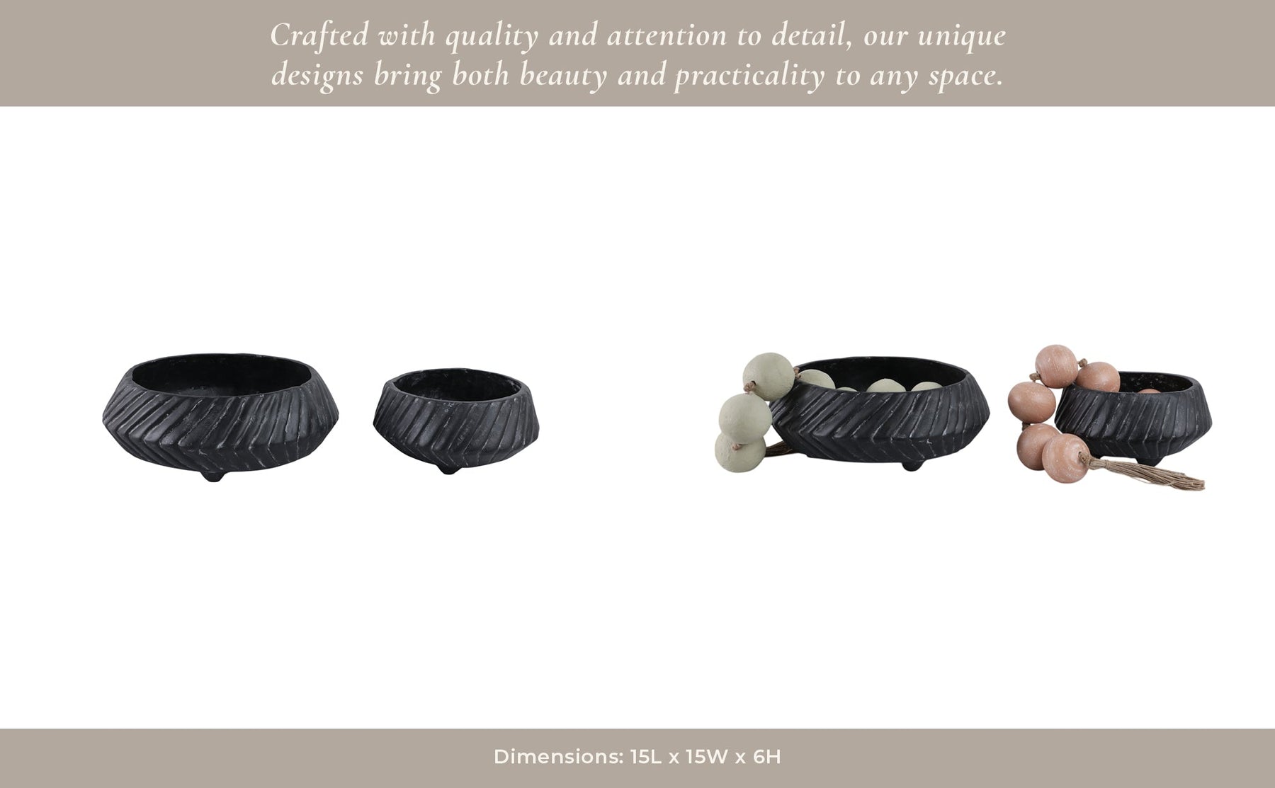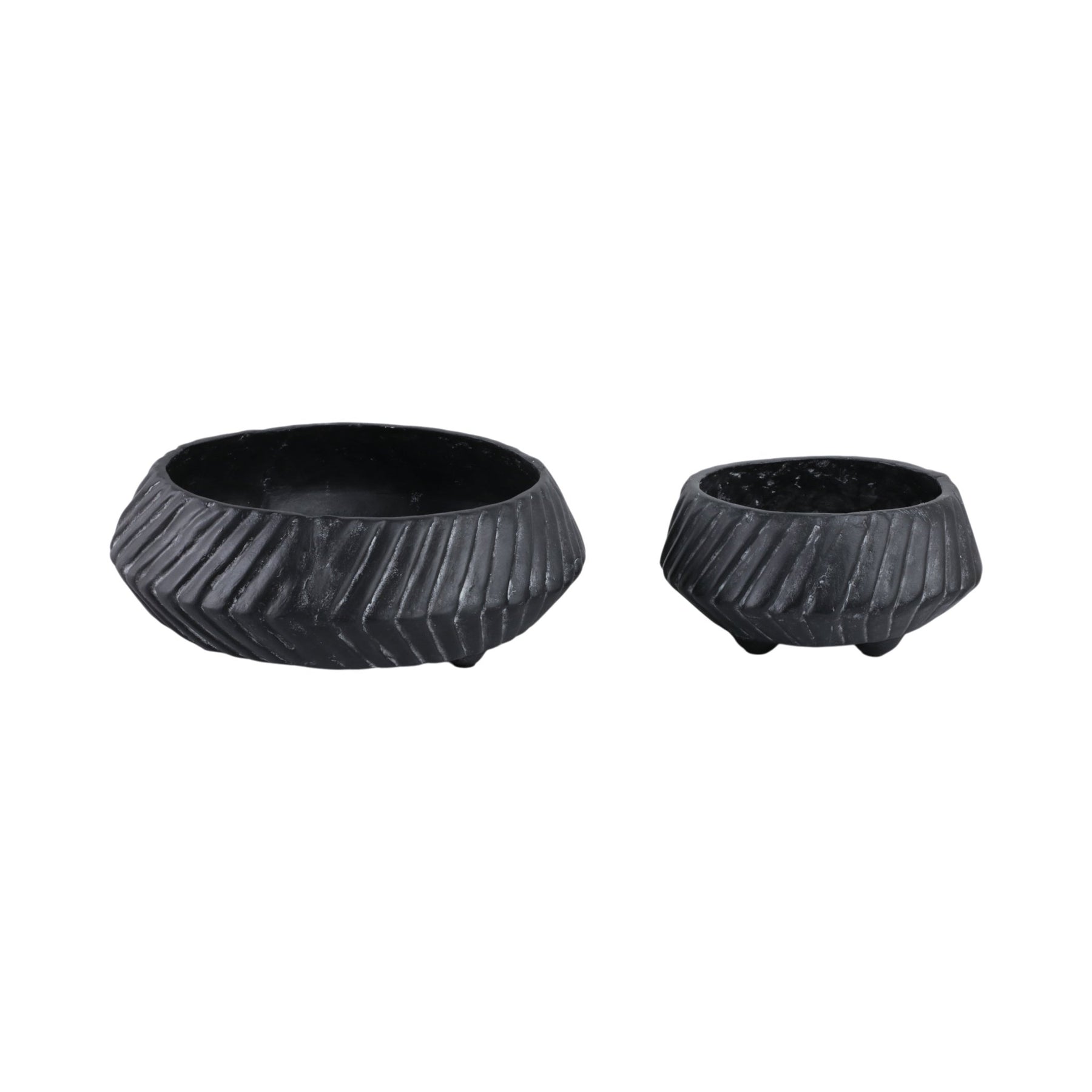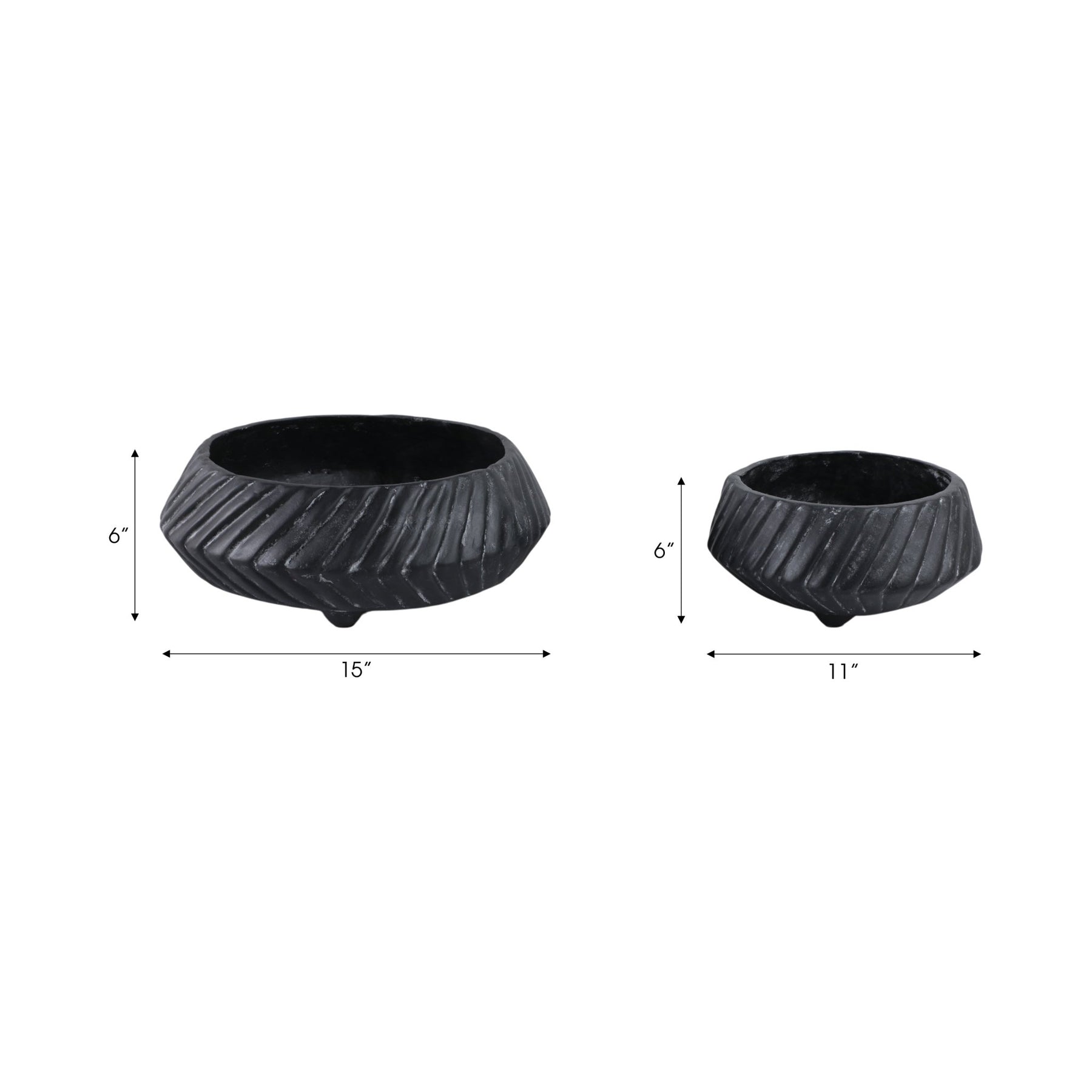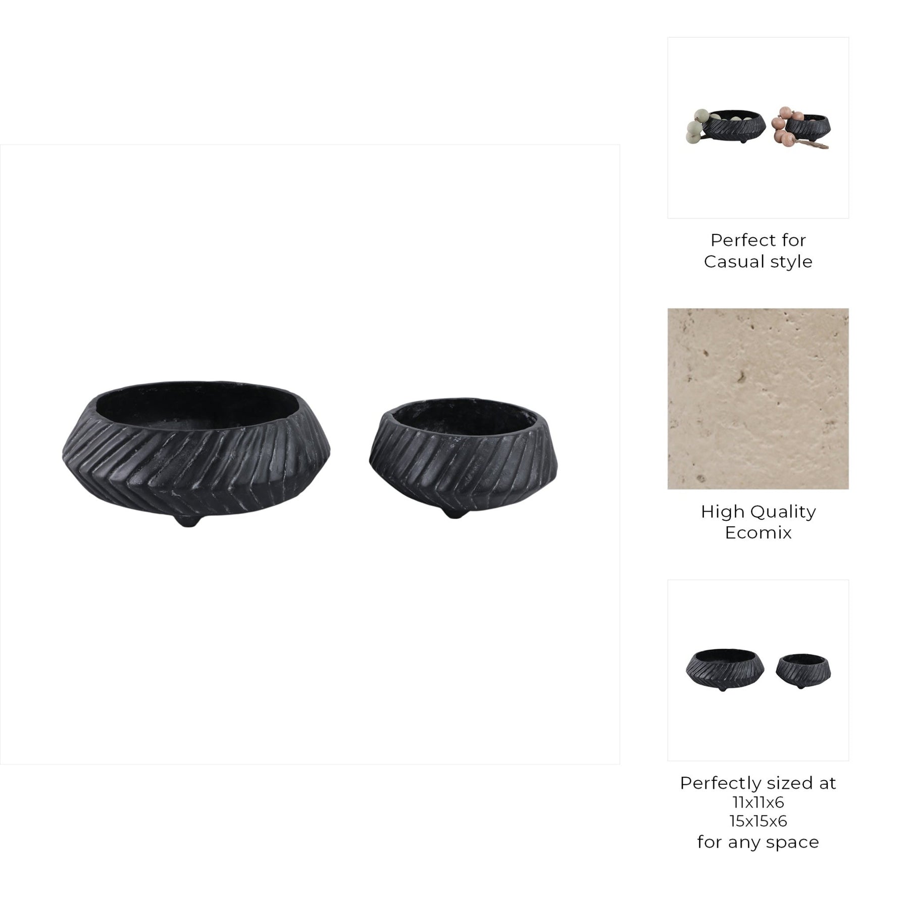 S/2 11/15" Tapered Ecomix Bowls With Lines, Black