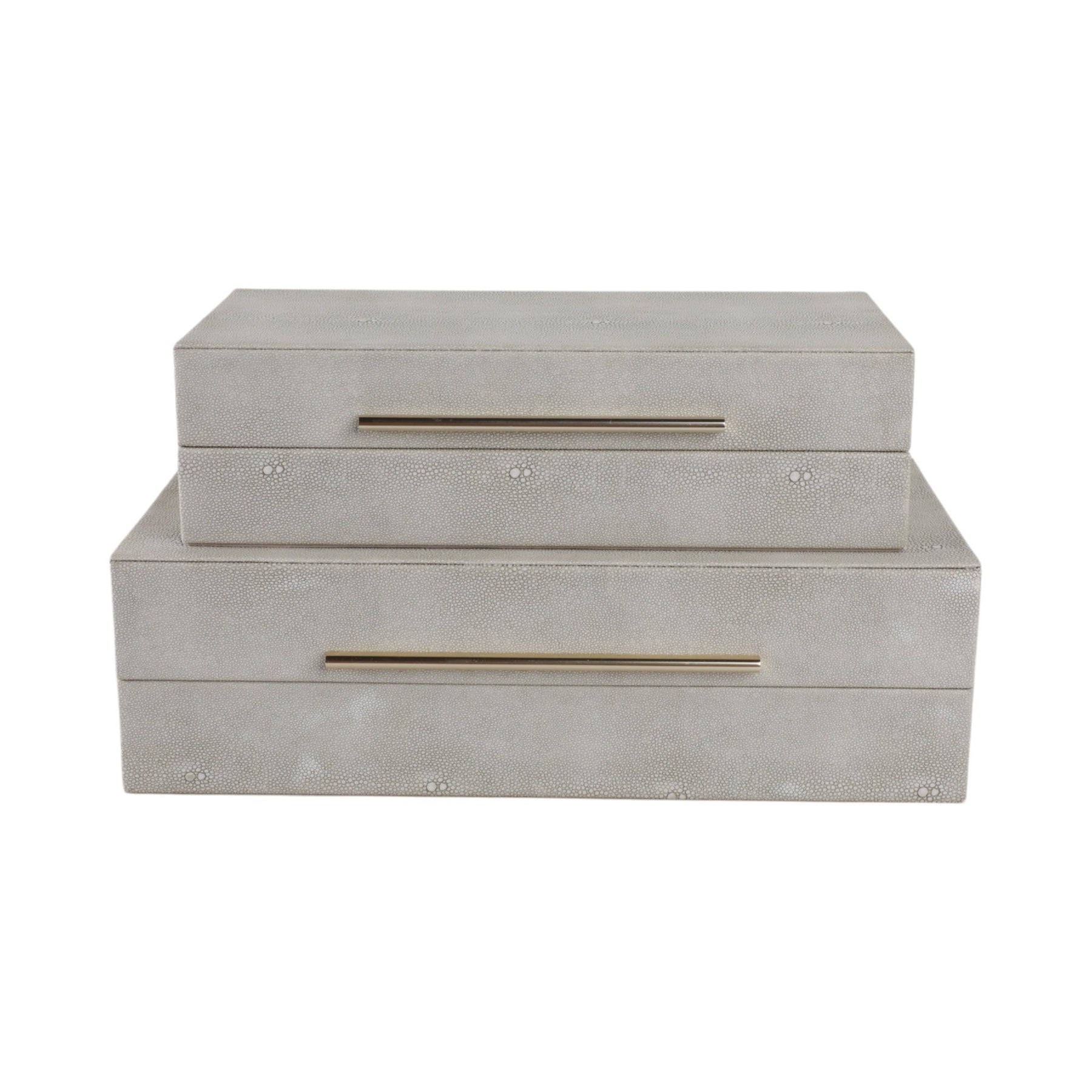 S/2 12/14" Rectangular Shagreen Boxes, Ivory