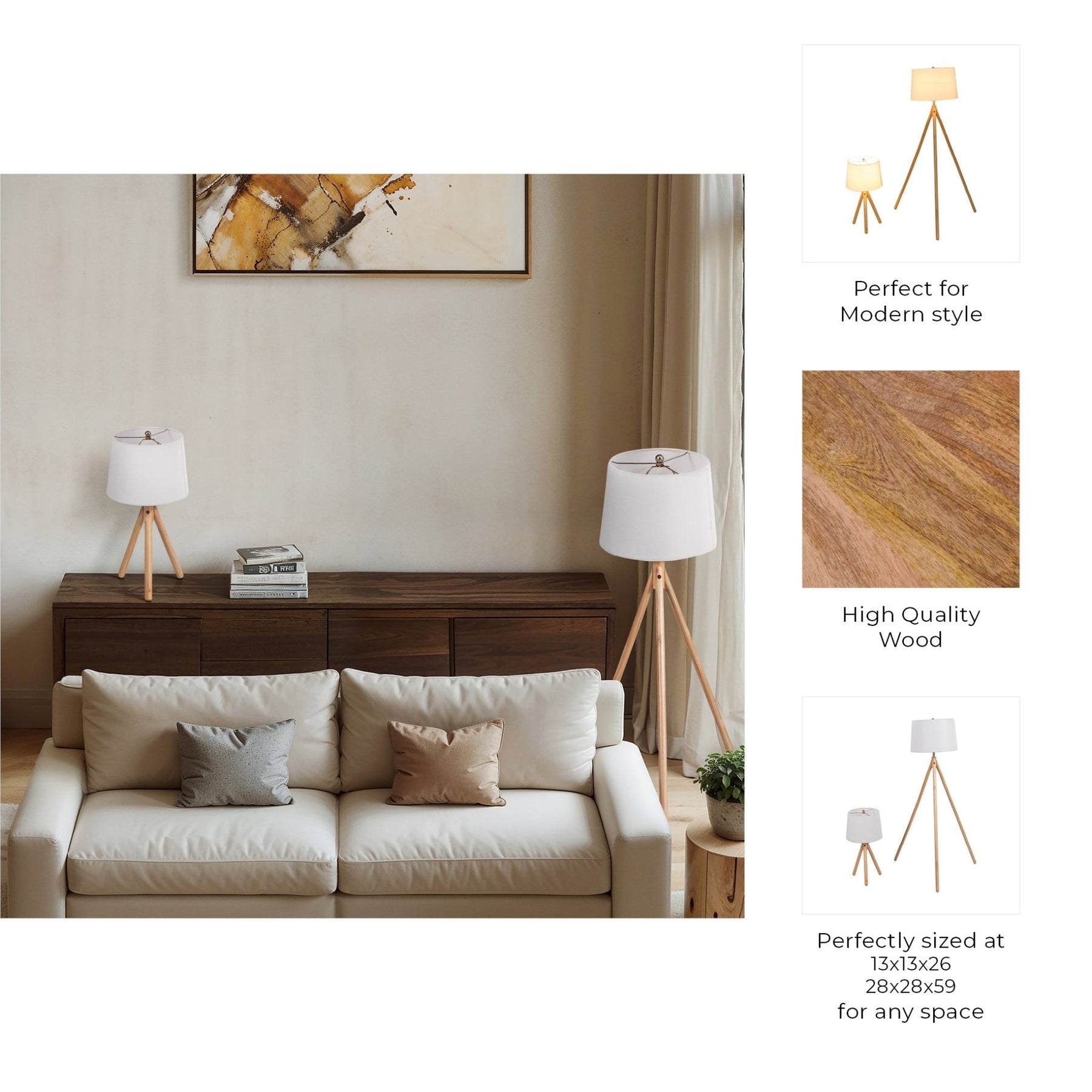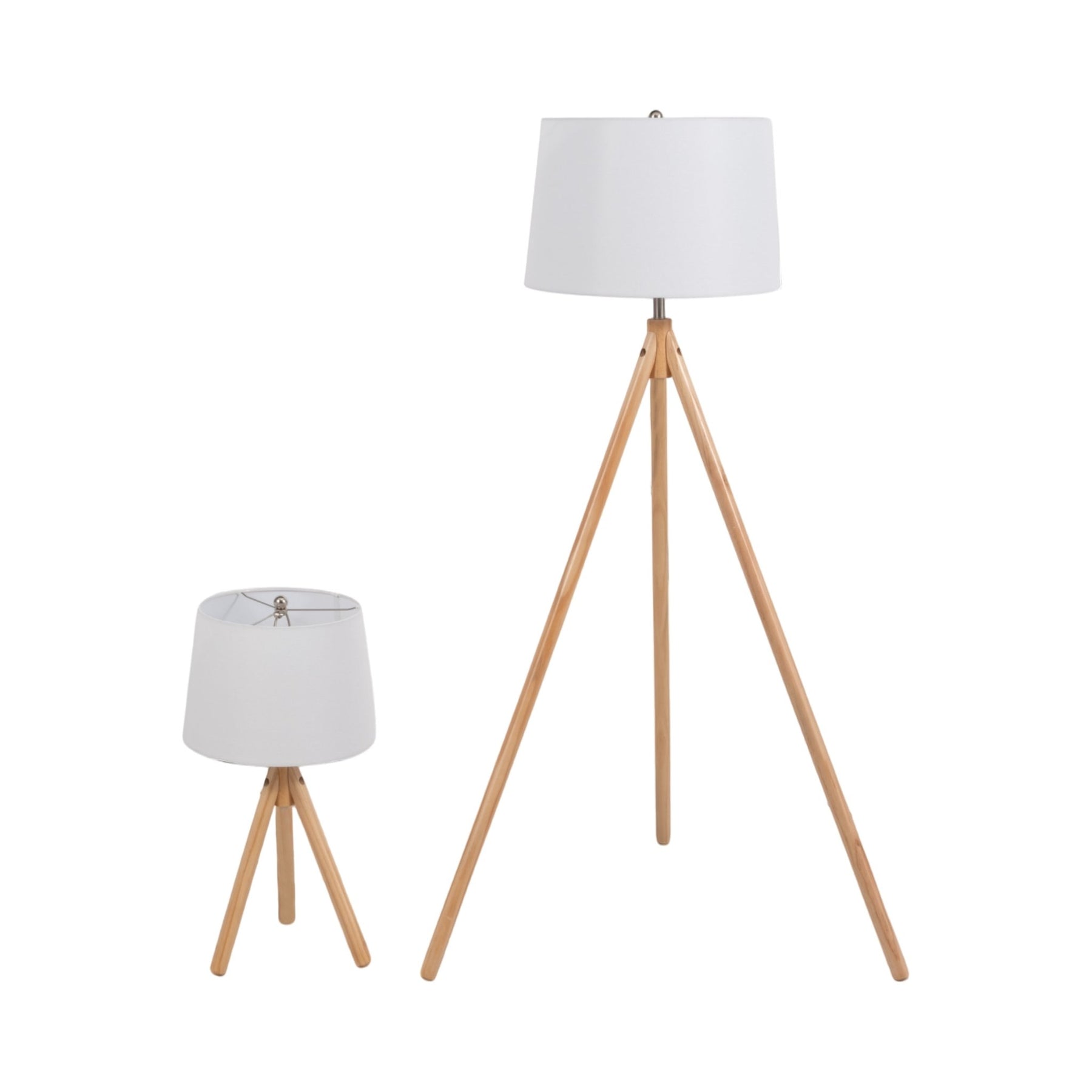 S/2 59/26" Wood Tripod Table&floor Lamps,natural - Al Rugaib Furniture