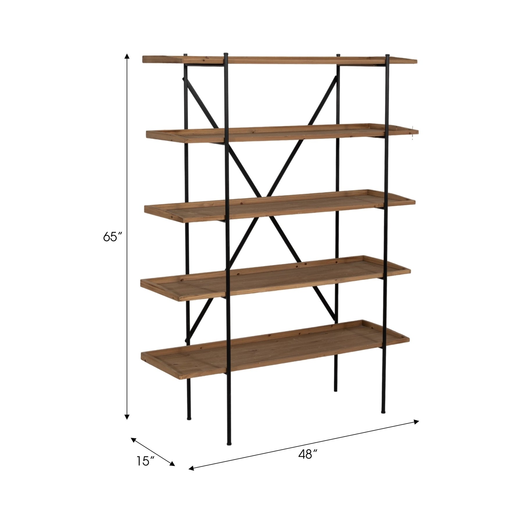 WOOD/METAL, 65"H 5-LAYERED SHELF, BROWN/BLACK KD