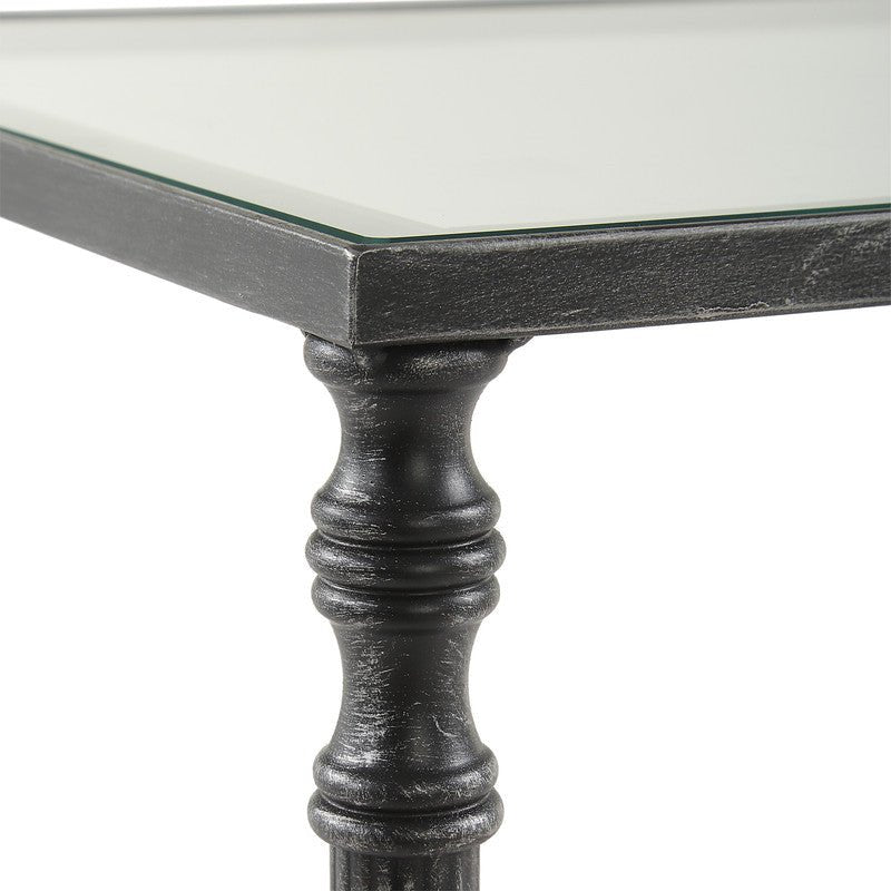 Henzler 33 W x 63 H x 33 D Black Square Accent Table with Glass Top