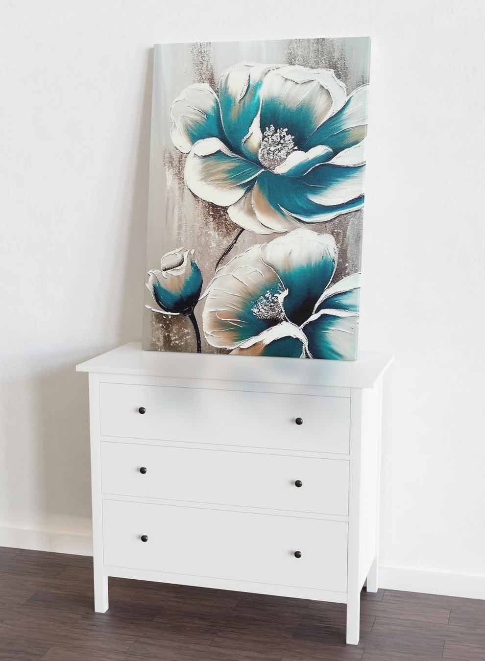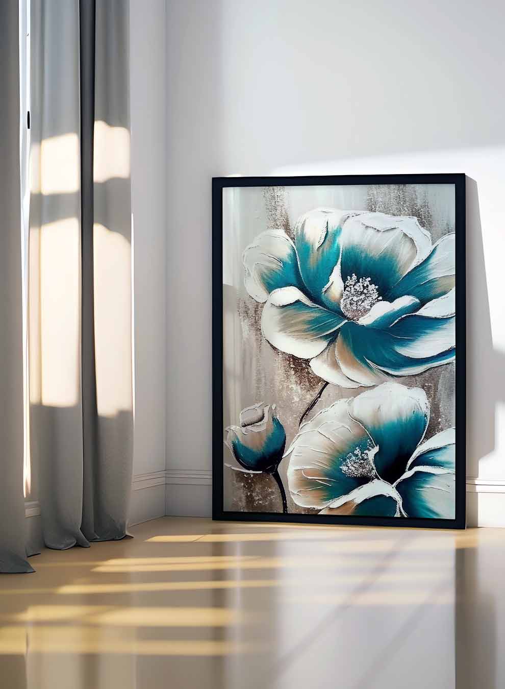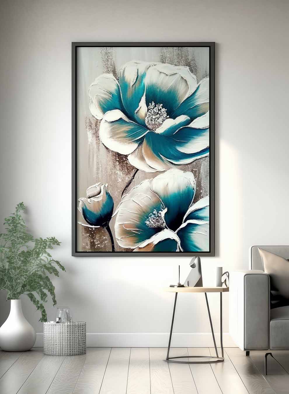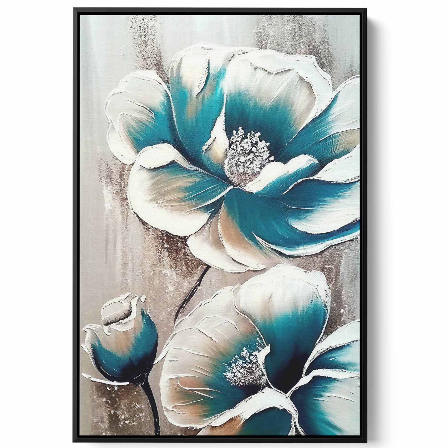 Canvas Wall Art Stretched Over Wooden Frame with Black Floating Frame