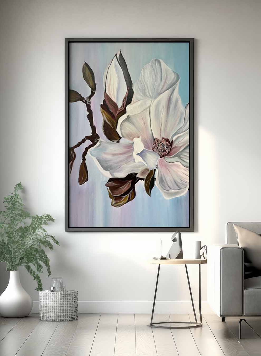 Canvas Wall Art Stretched Over Wooden Frame with Black Floating Frame