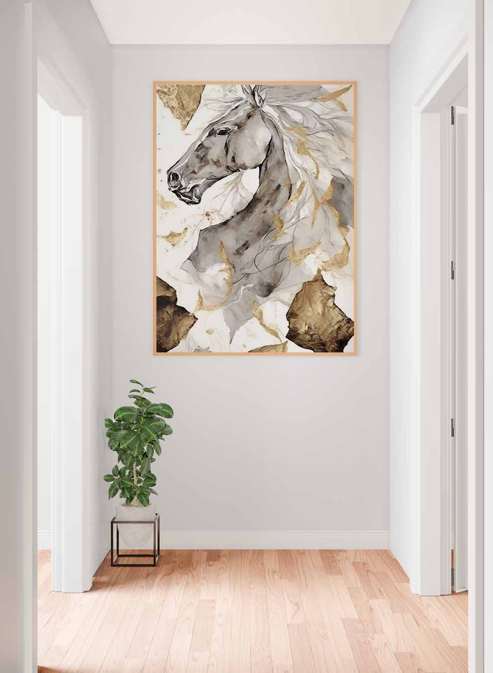 Canvas Wall Art Stretched Over Wooden Frame with Gold Floating Frame