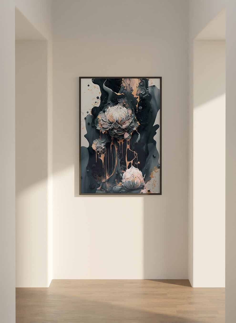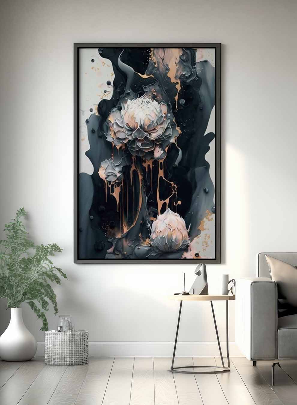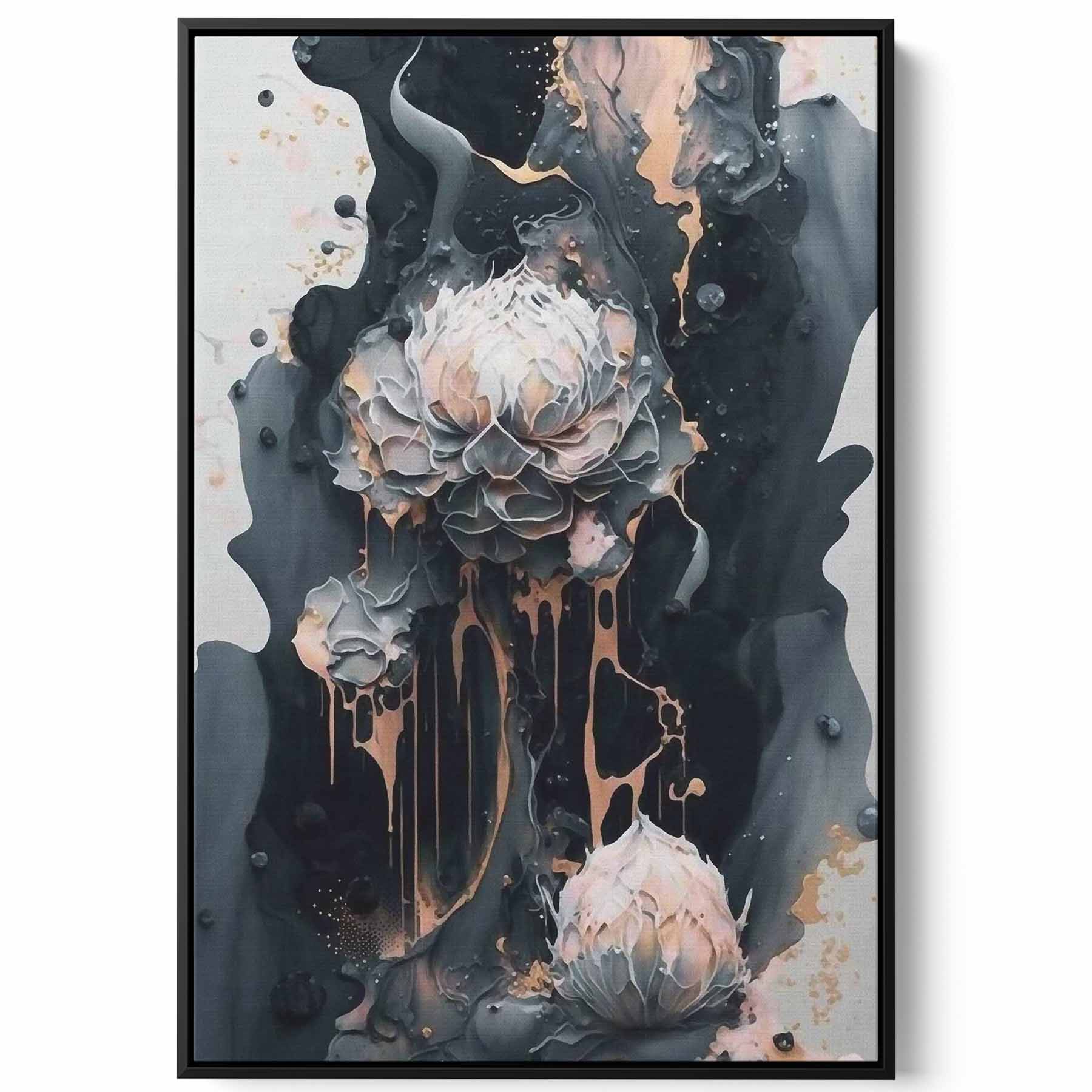 Canvas Wall Art Stretched Over Wooden Frame with Black Floating Frame