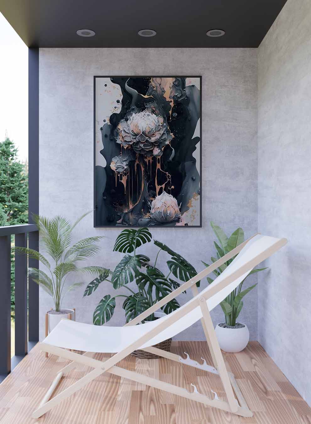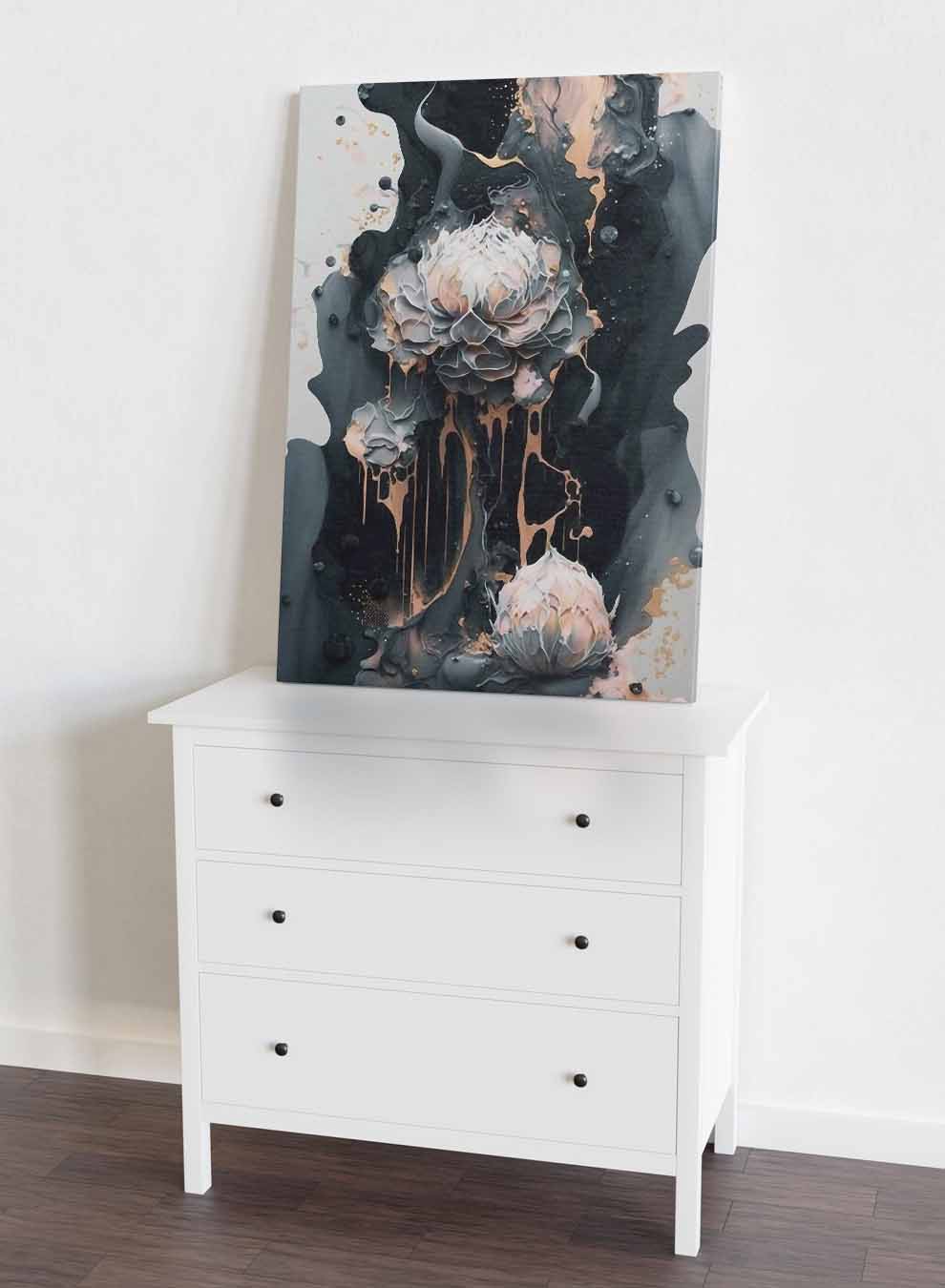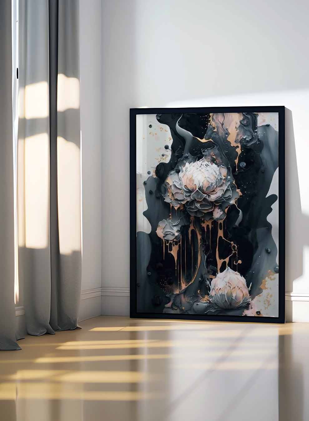 Canvas Wall Art Stretched Over Wooden Frame with Black Floating Frame