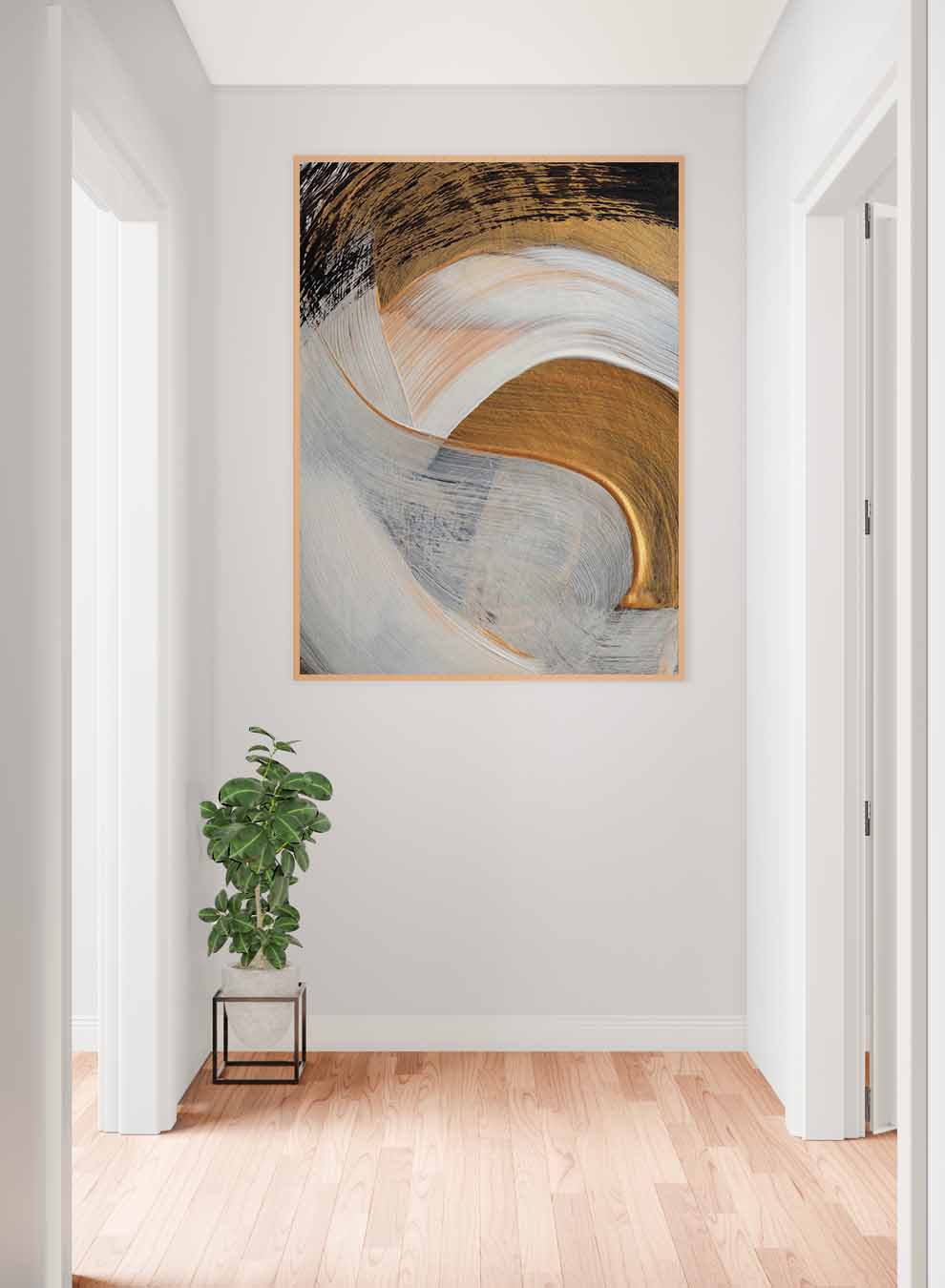 Canvas Wall Art Stretched Over Wooden Frame with Gold Floating Frame