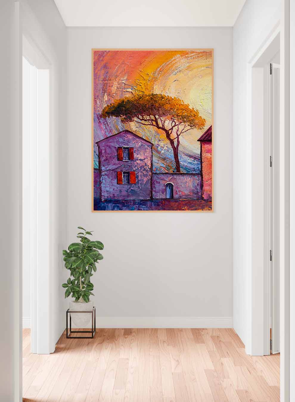 Canvas Wall Art Stretched Over Wooden Frame with Gold Floating Frame