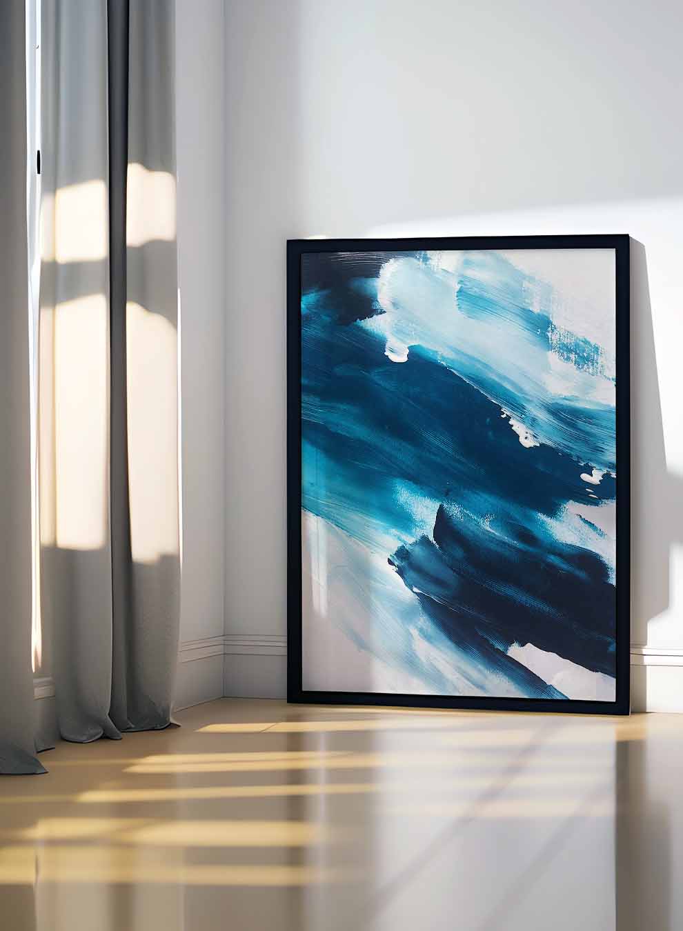 Canvas Wall Art Stretched Over Wooden Frame with Black Floating Frame