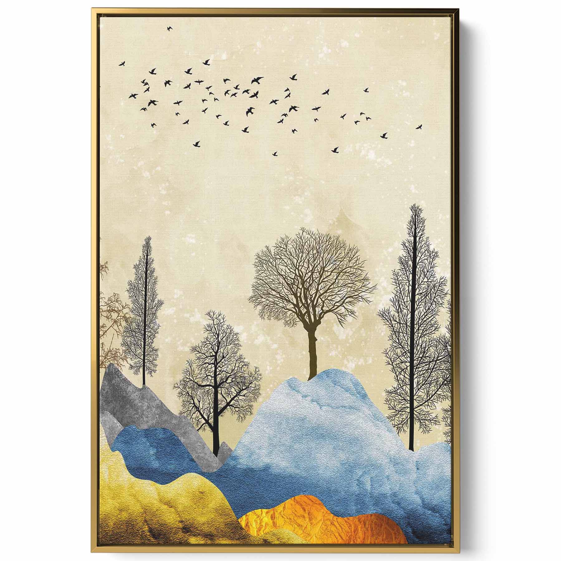 Canvas Wall Art Stretched Over Wooden Frame with Gold Floating Frame