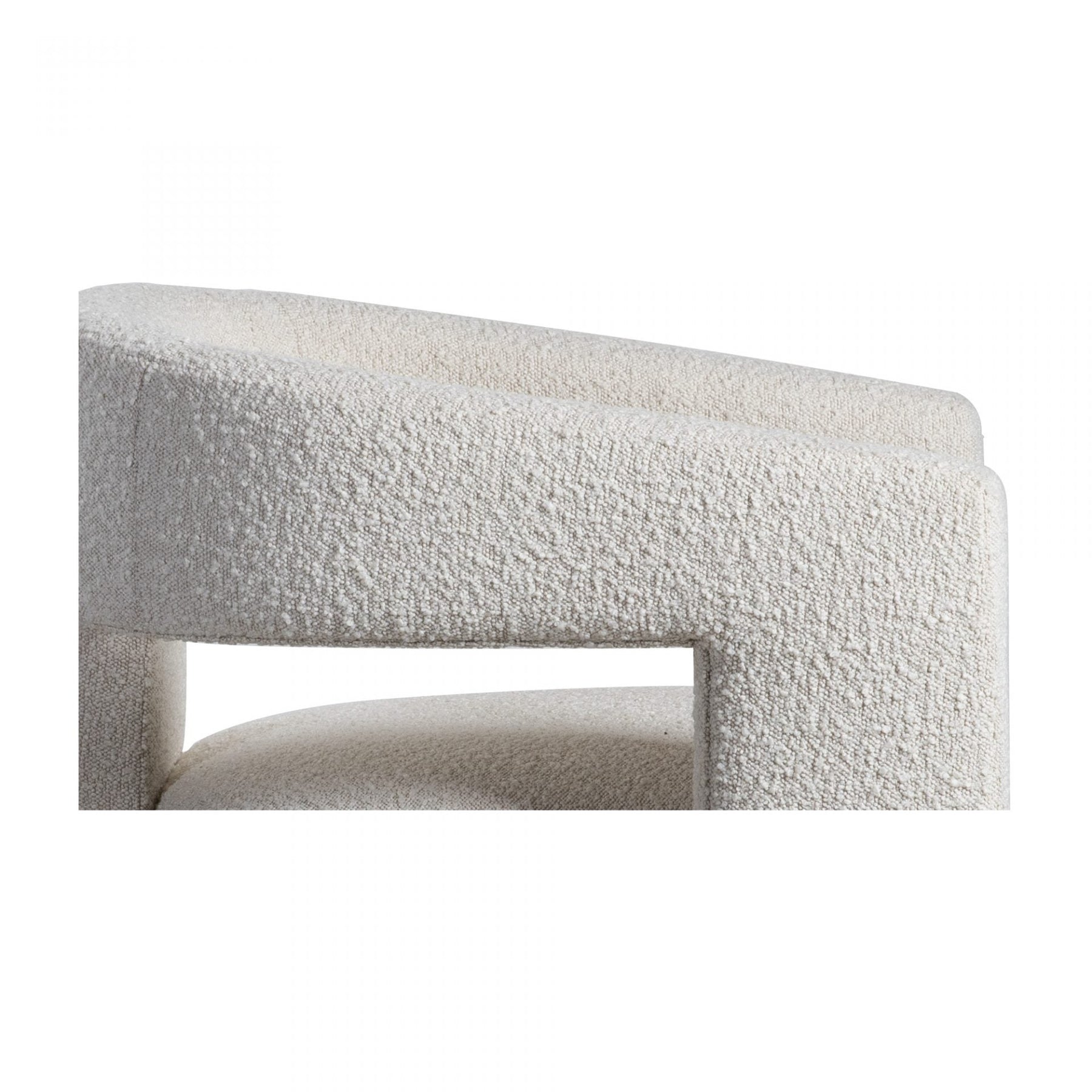 The armchair, refined. With Elo, the essential design elements of an armchair have been distilled to an utmost sculptural form while retaining 100% comfort. A modernist creation that embraces softness alongside sculptured simplicity, settle right into the plushly padded seat and curvaceous embrace of Elo's softly rounded back and armrests. A durable, molded frame of solid plywood offers support, while its tactile upholstery offers enduring quality. Highly styled, love Elo three ways as a desk chair, dining chair, or singular statement accent chair. Surprising from every angle, Elo blurs the boundaries between art and furniture as a most welcoming, fluid design.
