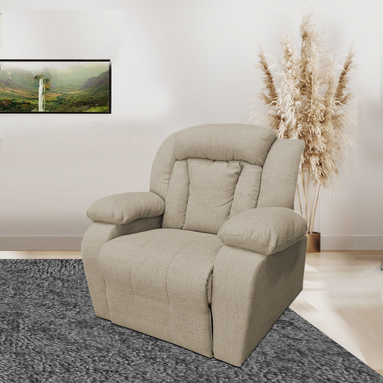 Linen Upholstered Rocking & Rotating Recliner Chair With Bed Mode From In House - Pale Brown - NZ50