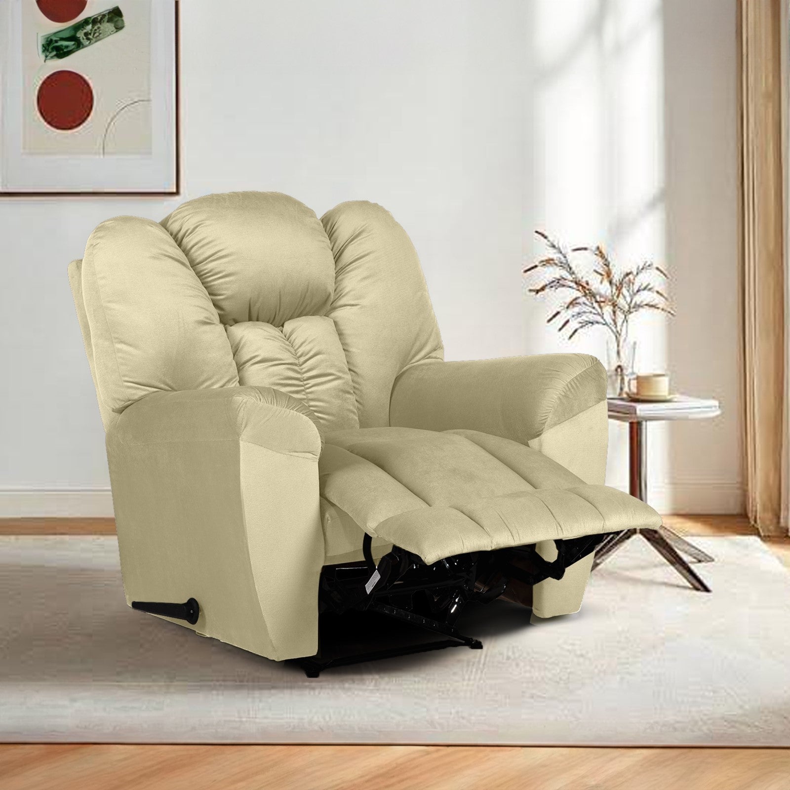 Velvet Rocking Recliner Chair - Dark Ivory - Stanford