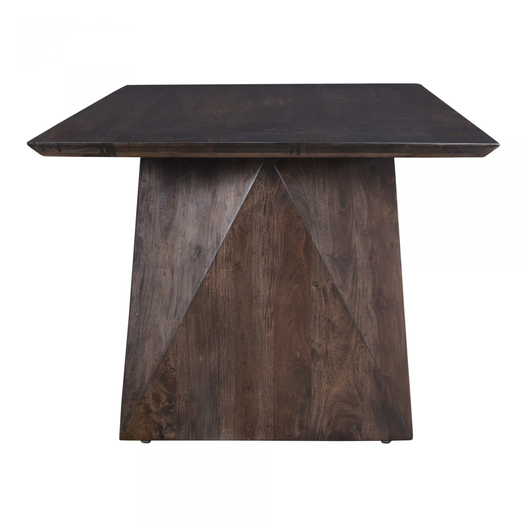 The Vidal dining table is a contemporary piece of dining room furniture that seats up to eight people. Crafted from solid Sheesham wood, it is incredibly durable and easy to care for. Its beauty lies in the details, from the inward sloping edges to the mirrored leg design. The smoky brown finish makes it a classic style that will never date.