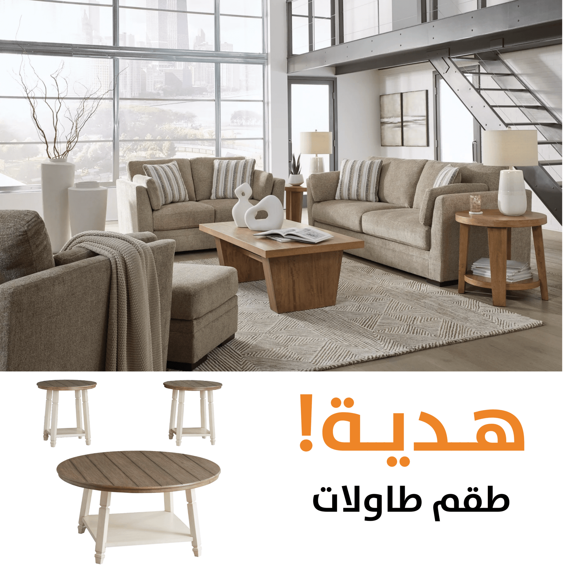 Includes round coffee table and 2 round end tables;Made of white oak veneers, wood and engineered wood;Two-tone finish in textured antique white on the legs and lower shelves and textural weathered oak color on table tops;Tabletops with planked look;Canted legs with open lower shelves;Assembly required