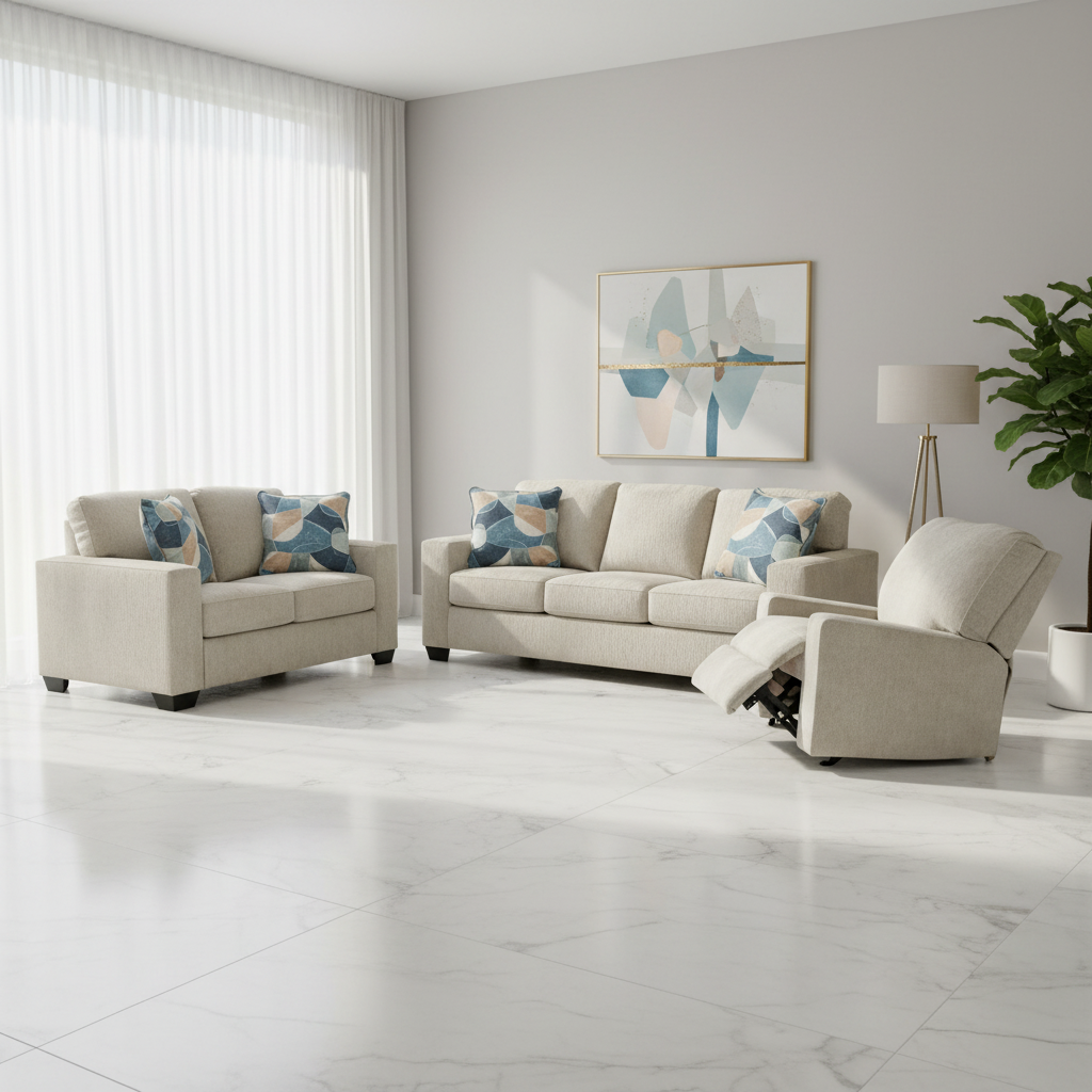 The Deltona Sofa Set combines modern design with exceptional comfort and durability. Crafted with high-quality materials, this set offers sturdy construction and soft cushions that provide lasting support. Its sleek lines and neutral tones complement various interior styles, making it a versatile choice for both living rooms and lounges. Ideal for creating a welcoming atmosphere, the Deltona Sofa Set enhances your space with a balance of elegance and functionality.