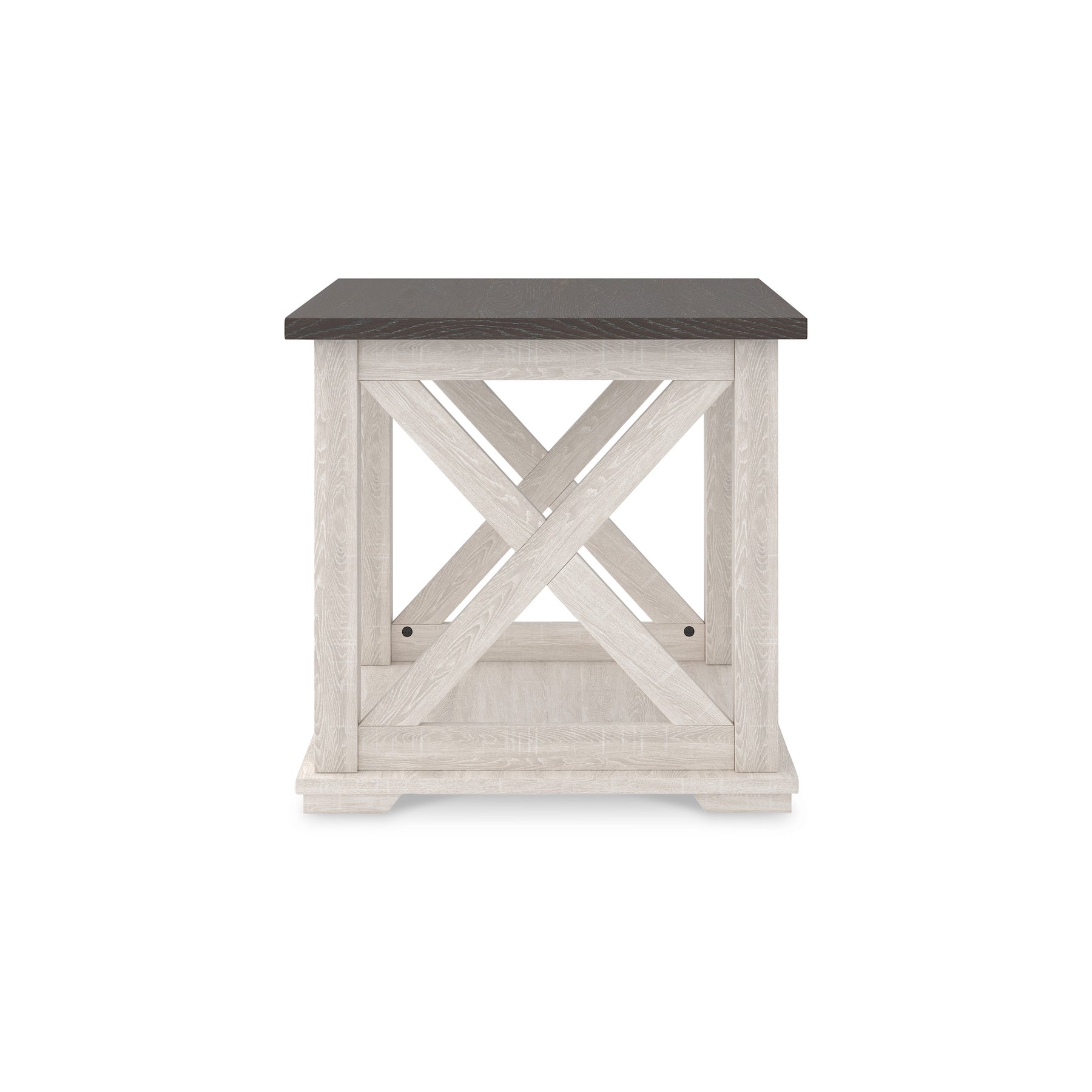 Raise the bar on modern farmhouse design with this versatile occasional table set. Sporting a two-tone, gray and antiqued white color scheme and cross buck design, this table's handy spring-loaded mechanism of the cocktail table brings the tabletop closer to you. This versatile table makes it easier than ever to eat, work or play from the comfort of your sofa.
