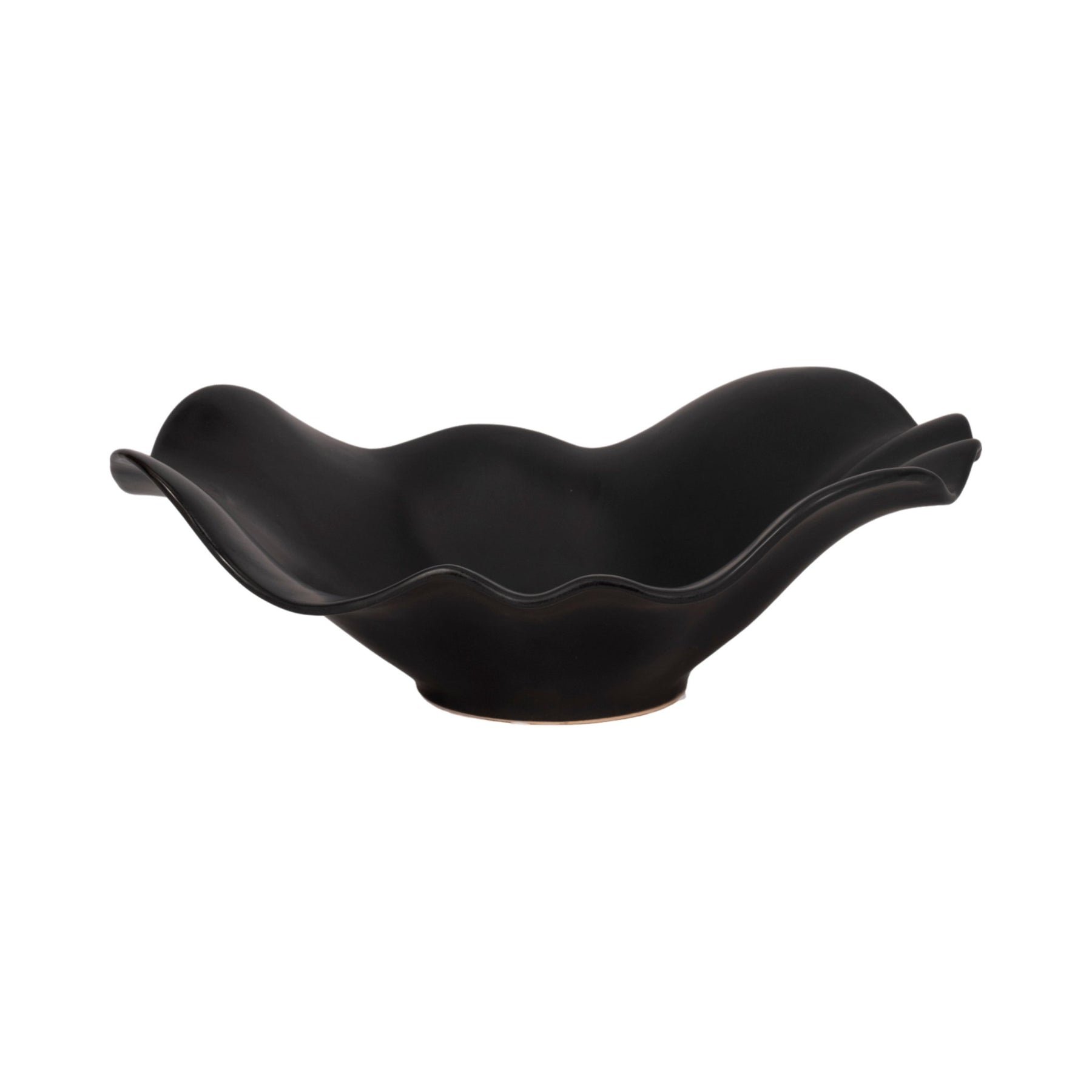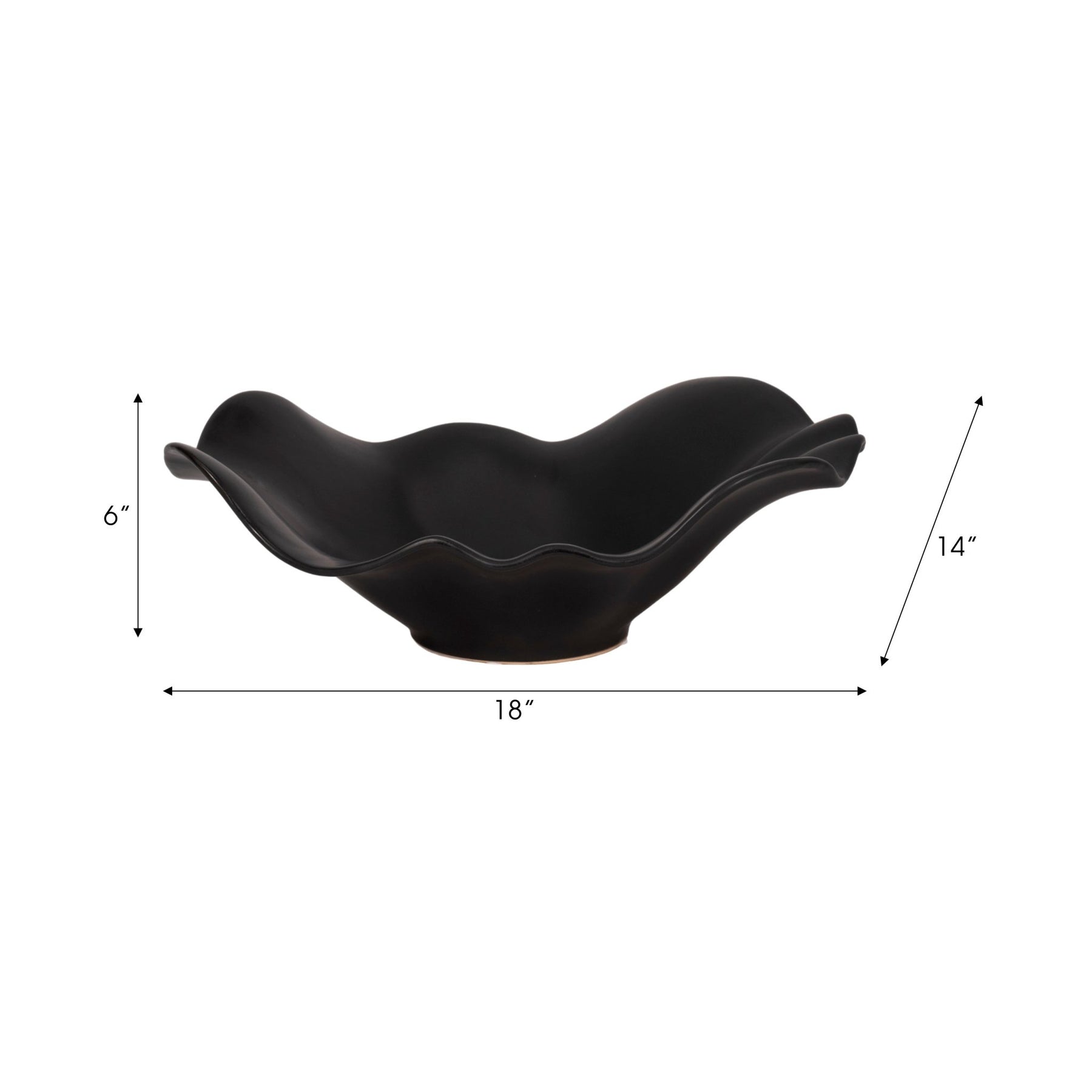 18" Ruffled Edge Bowl Matte Finish, Black - Al Rugaib Furniture