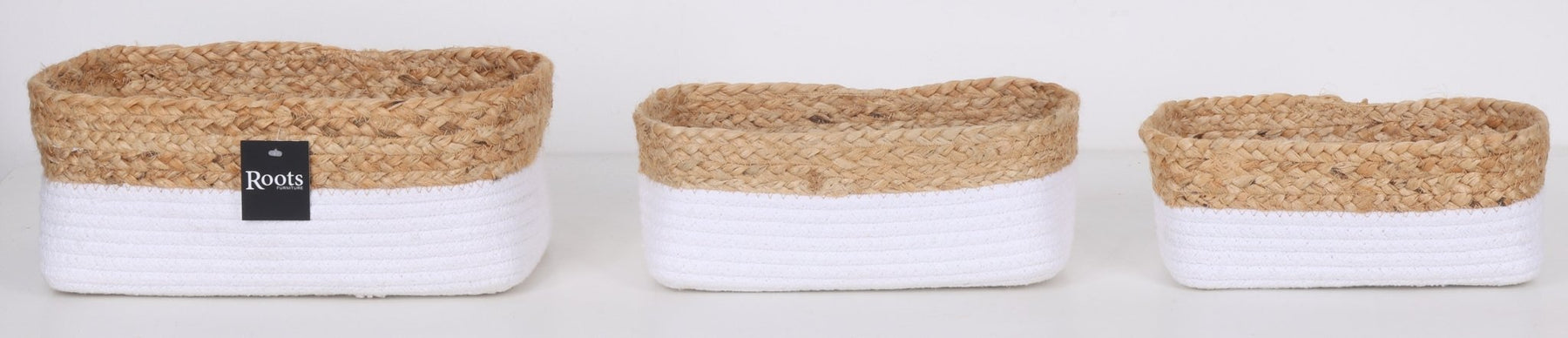 COTTON/JUTE RECT ORGANIZER - WHT+NATL S/3