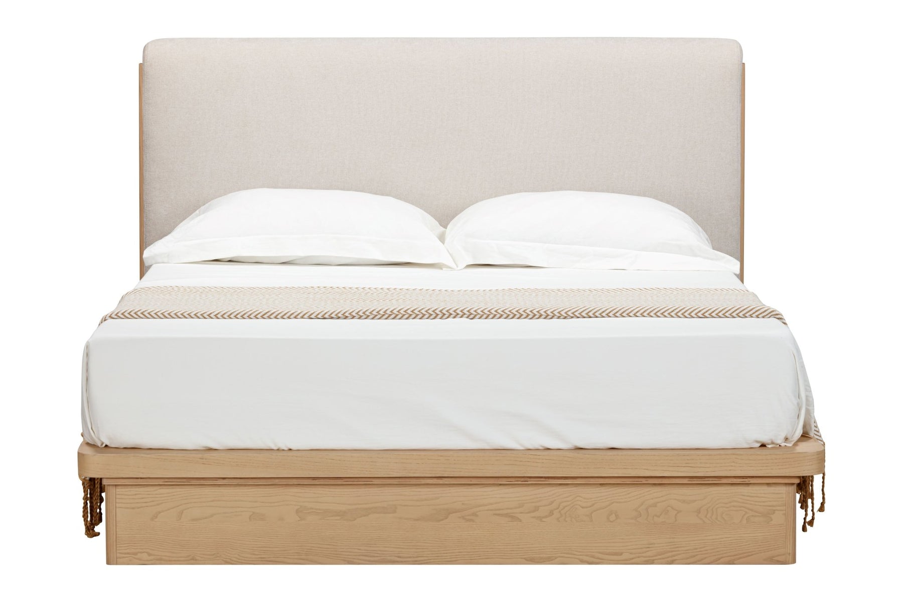 Travoli bed frame - King size Solid American ash, texstyle dine 002 cream fabric