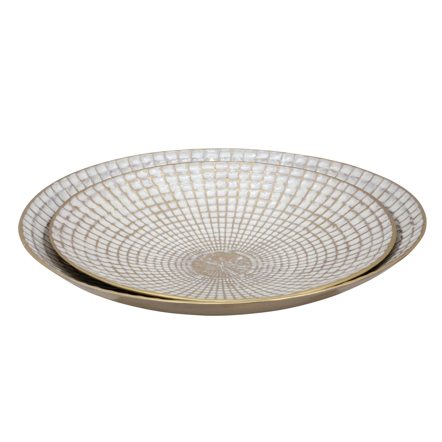 S/2 METAL 18/21" ROUND PLATES, IVORY/CHAMPAGNE