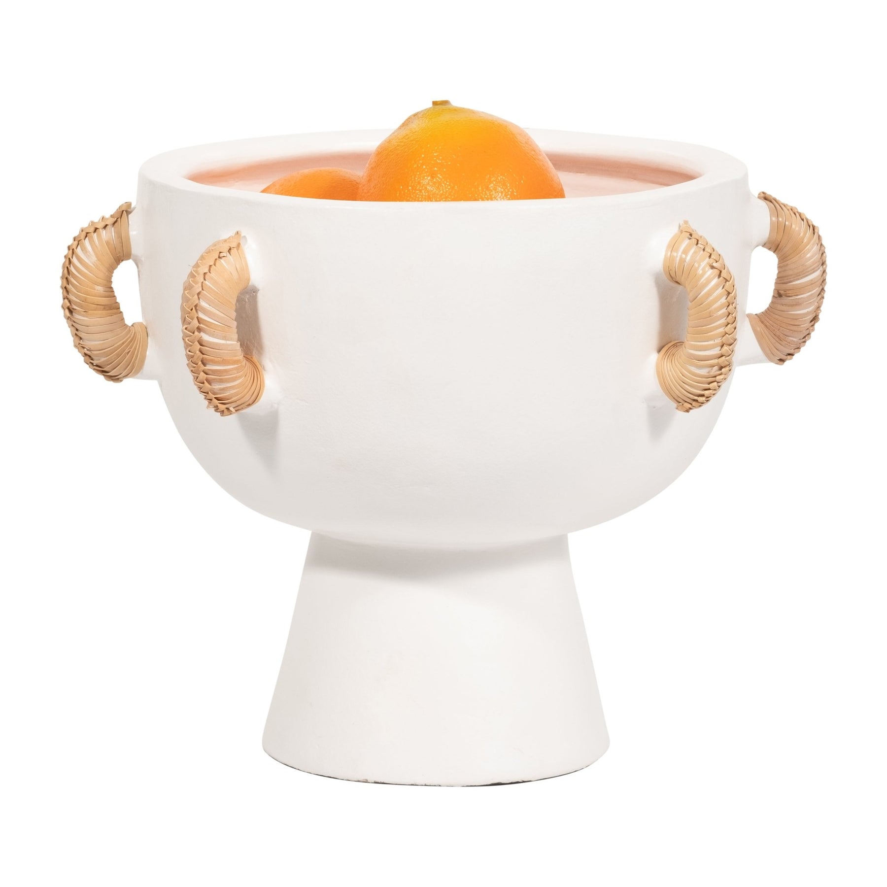TERRACOTTA, 11"H EARED BOWL ON STAND VASE, WHITE