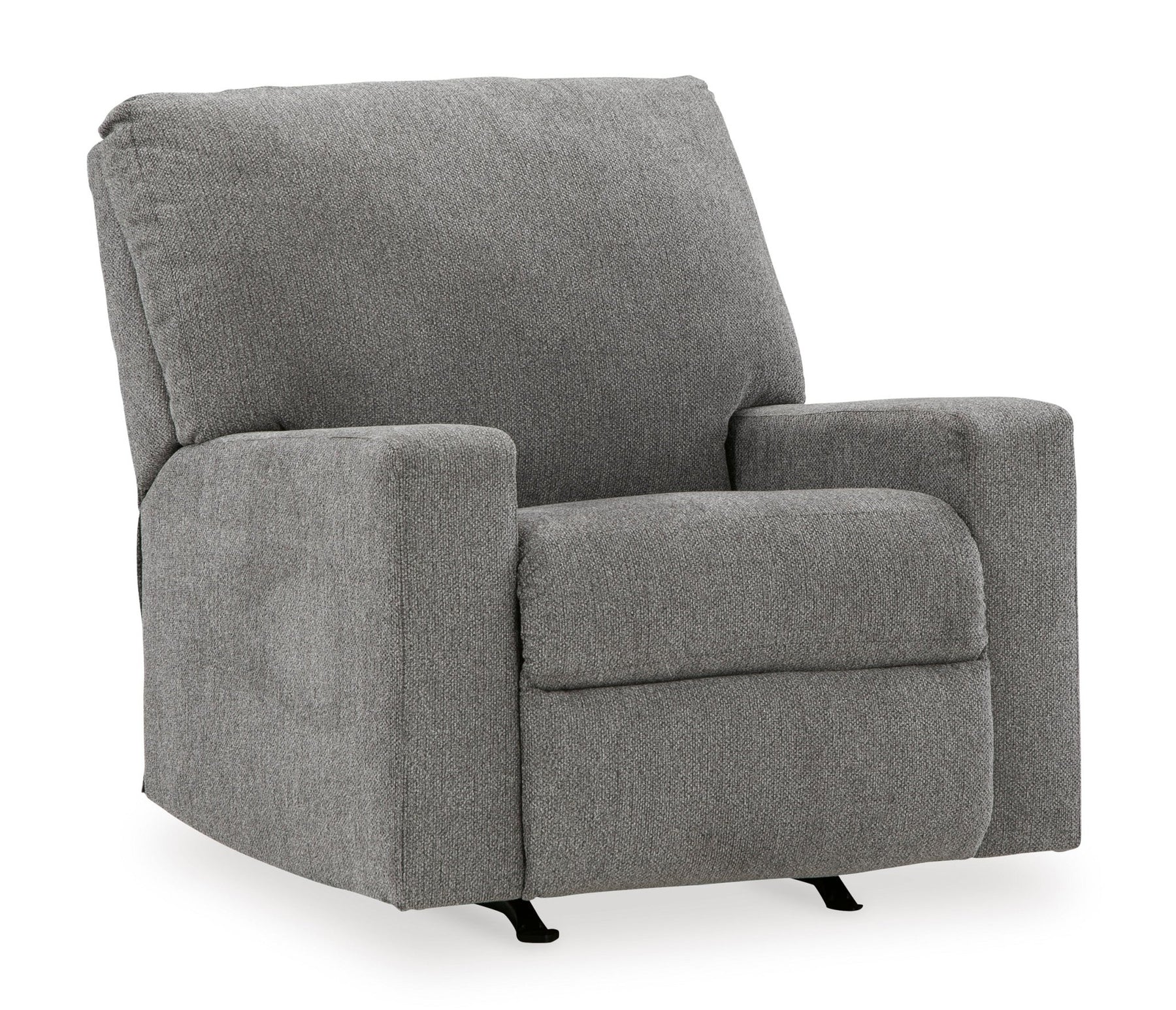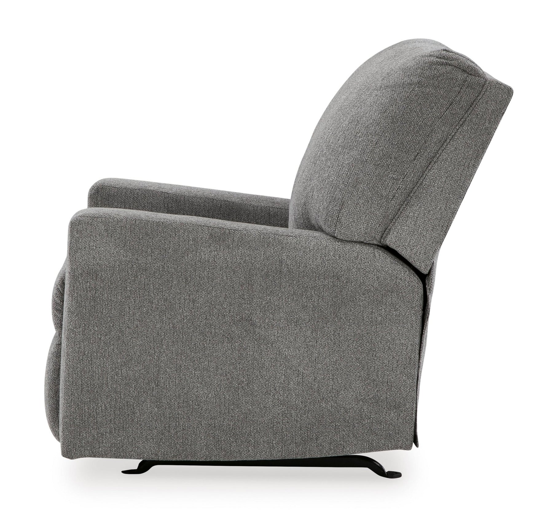 Pull tab reclining motion;Gentle rocking motion;Corner-blocked frame with metal reinforced seat;Attached cushions;High-resiliency foam cushion wrapped in thick poly fiber;Polyester upholstery