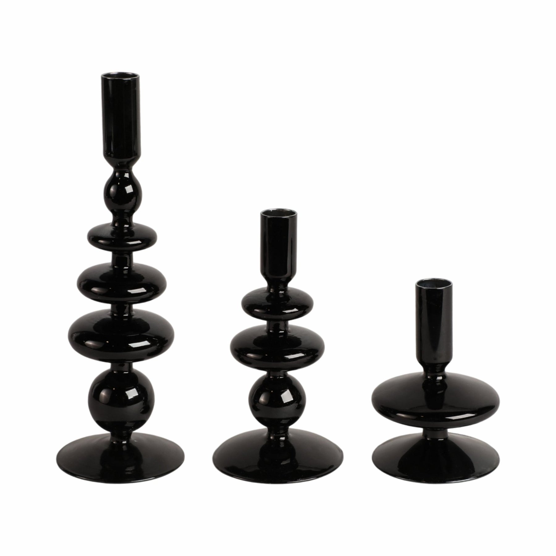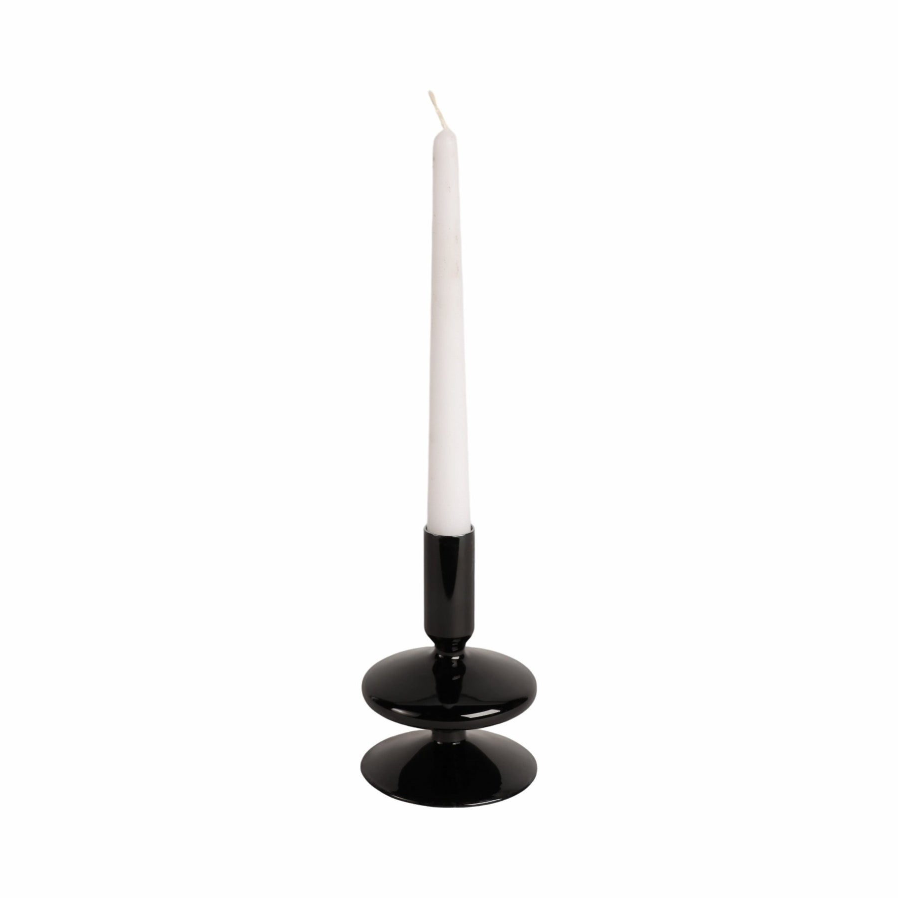 5" Vintage Glass Taper Candle Holder, Black - Al Rugaib Furniture