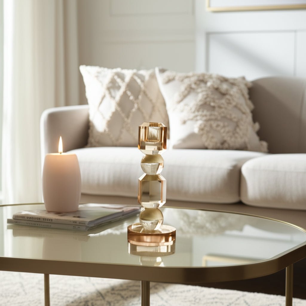 8" Geo Crystal Taper Holder, Amber - Al Rugaib Furniture