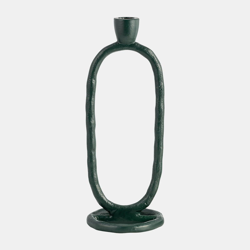 METAL, 10" OPEN OVAL TAPER CANDLEHOLDER, DARK GREE