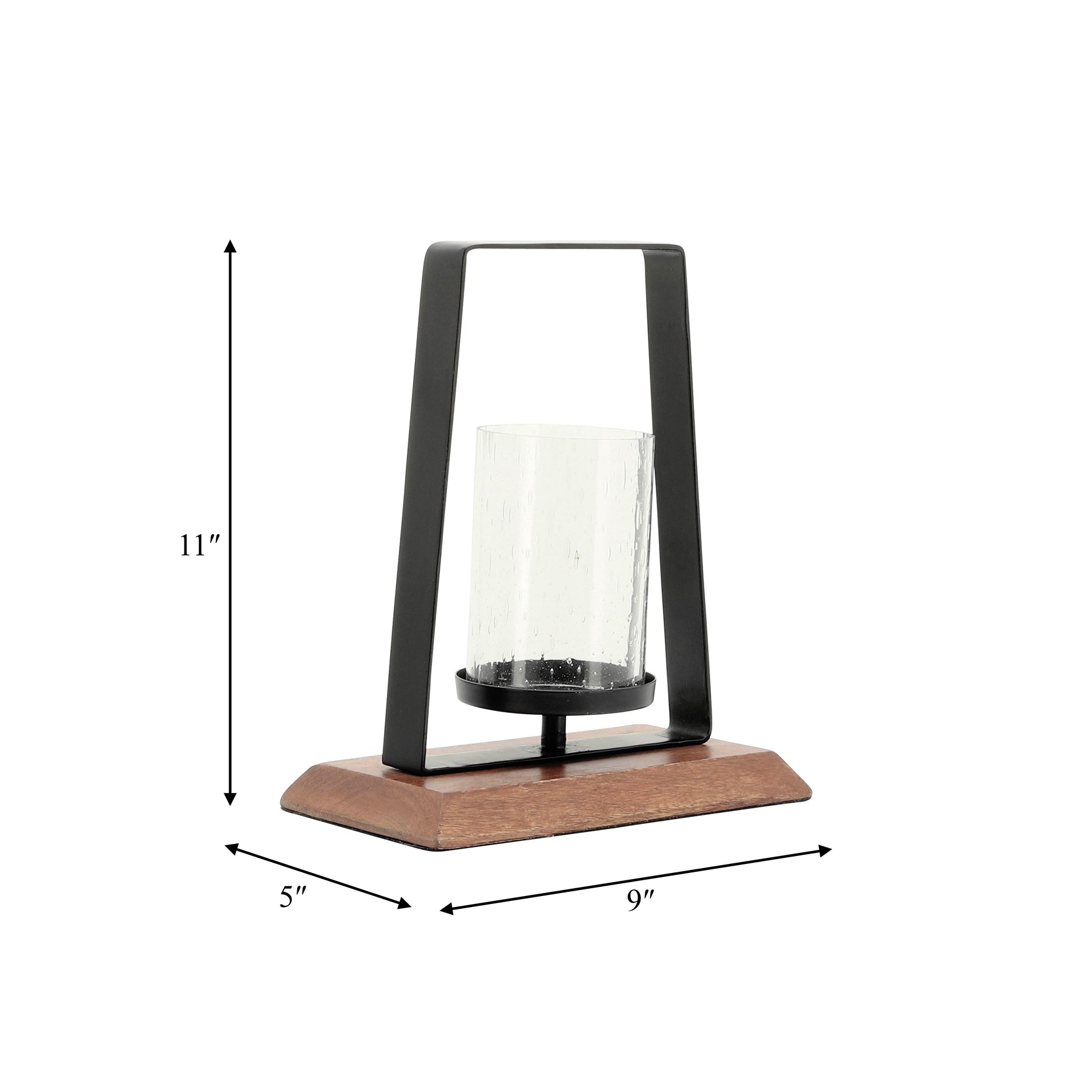 Metal, 11"H Hurricane W/ Wood Base, Black