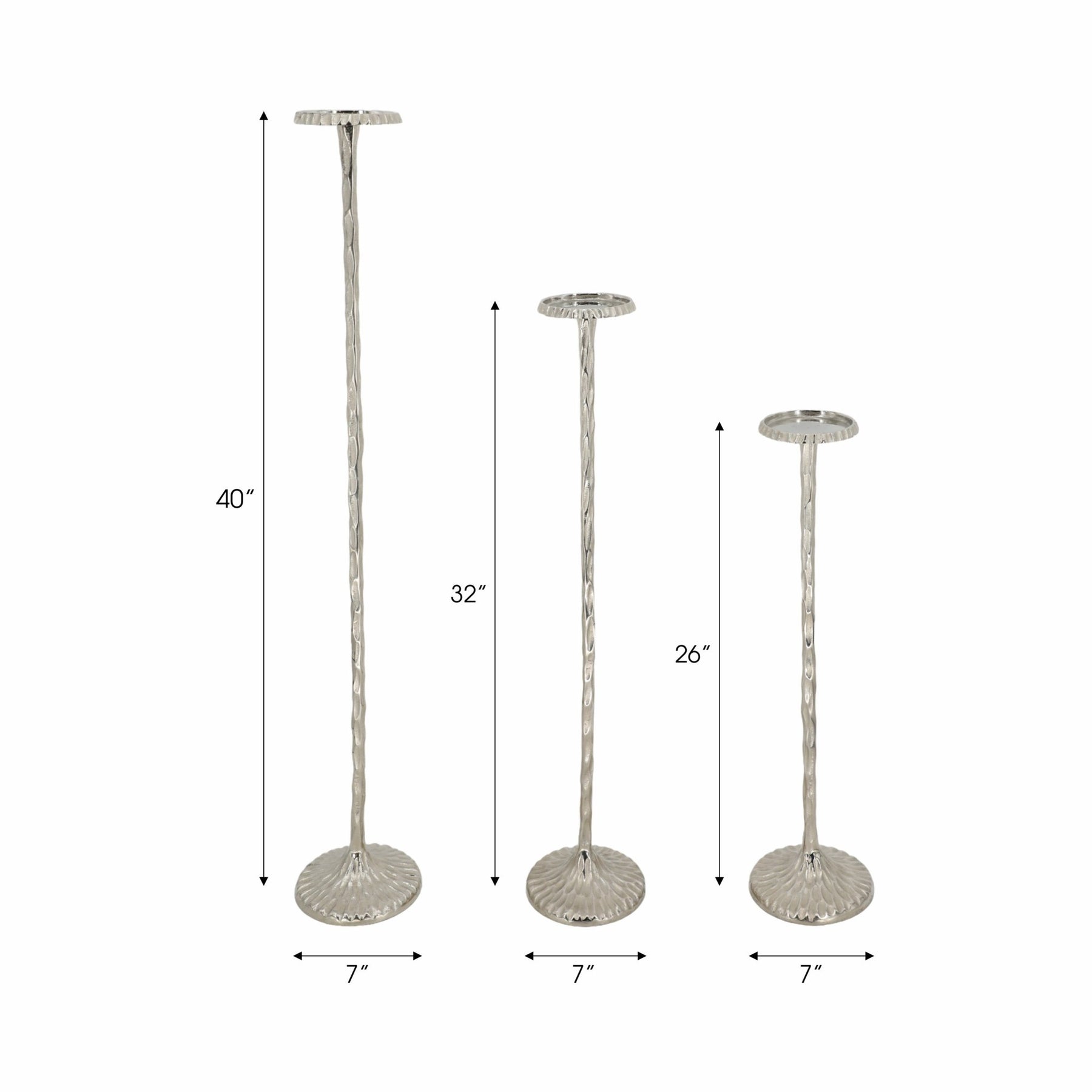 S/3 26/32/40" Crestin Silver Tall Candleholders Kd