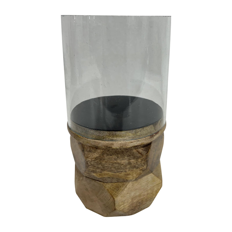 WOOD, 8" STACKED HEXAGON PILLAR HURRICANE, NATURAL