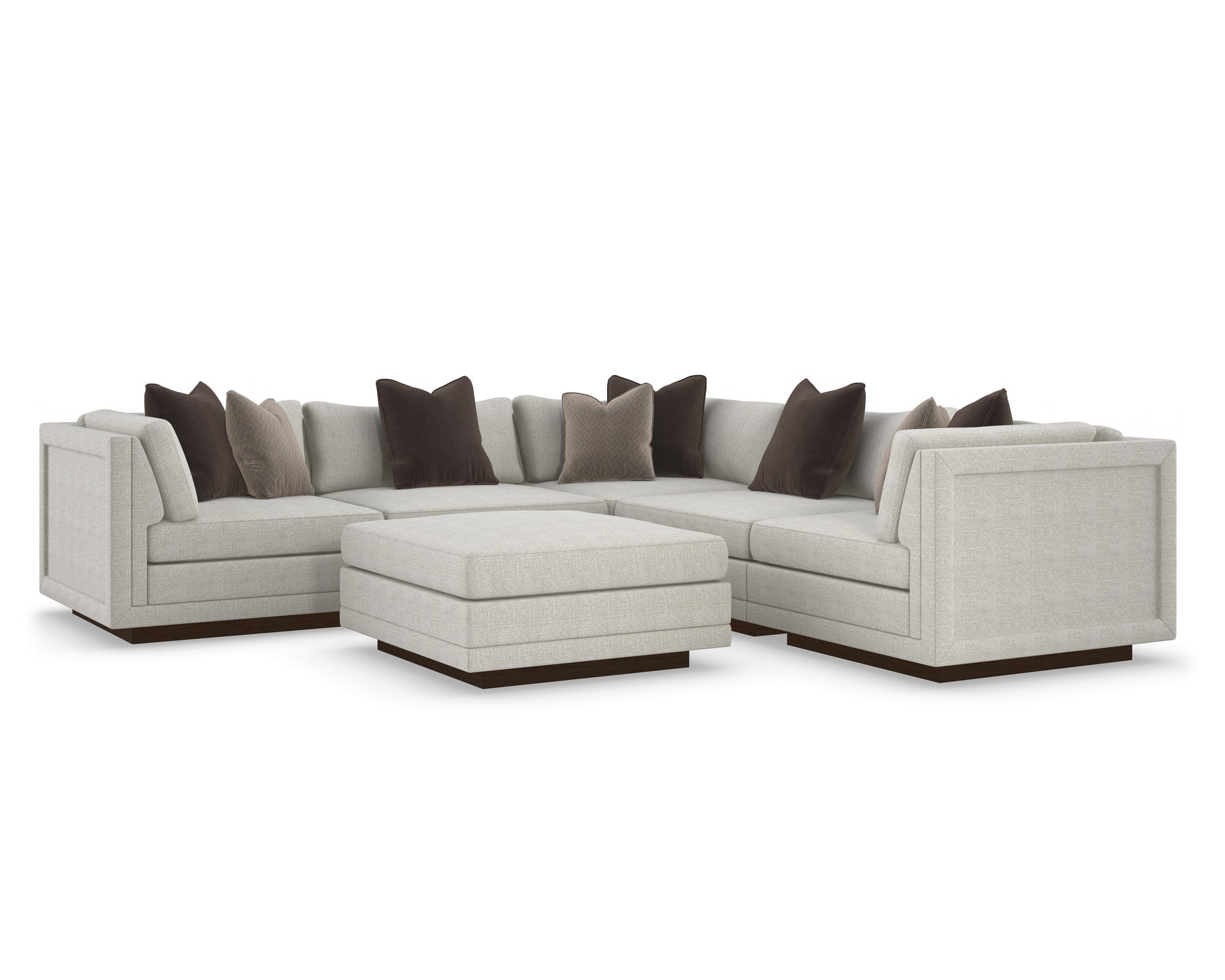 Casually elegant, this fully upholstered corner unit is designed to work with the armless chair to create any configuration you need for your living space. Its versatile design lets it work as a right-arm, left-arm or corner piece. Perfectly sized and deeply comfortable, it’s tailored to perfection in a neutral, menswear-inspired look with a textured tweed pattern that’s touchably soft. Contrasting accent pillows add additional style, fashioned in a deep gunmetal grey velvet and a contemporary styled black and white herringbone stitch. A cut-out boxing design around the outside back and a recessed wood plinth base in Simply Black complete this piece distinctive aesthetic style.