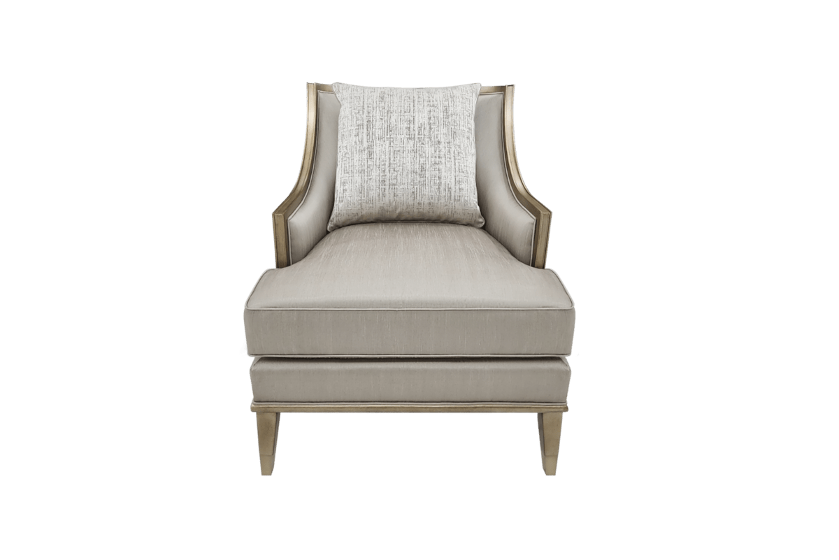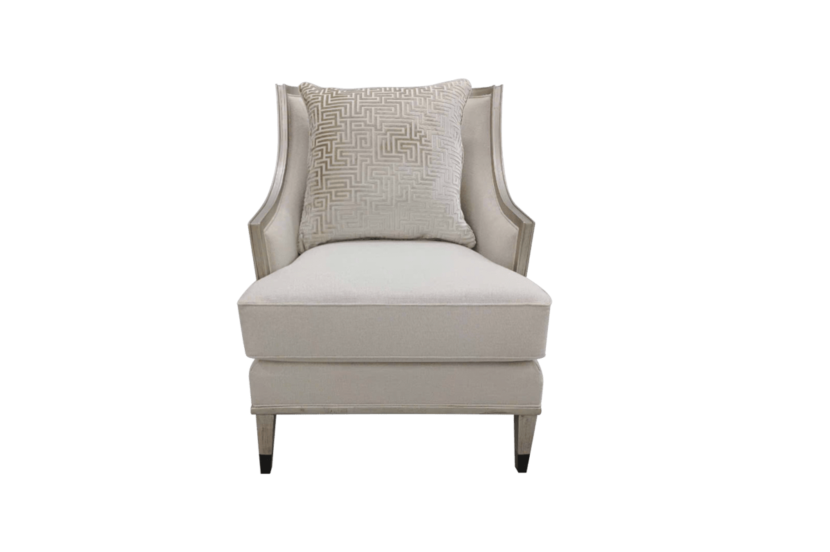 Clean and classic, the Harper Matching Chair echoes the lines of the Harper Sofa and brings together elements of both contemporary and traditional design: square tapered wood legs, exposed wood frame, curved arms, and a reverse half moon.