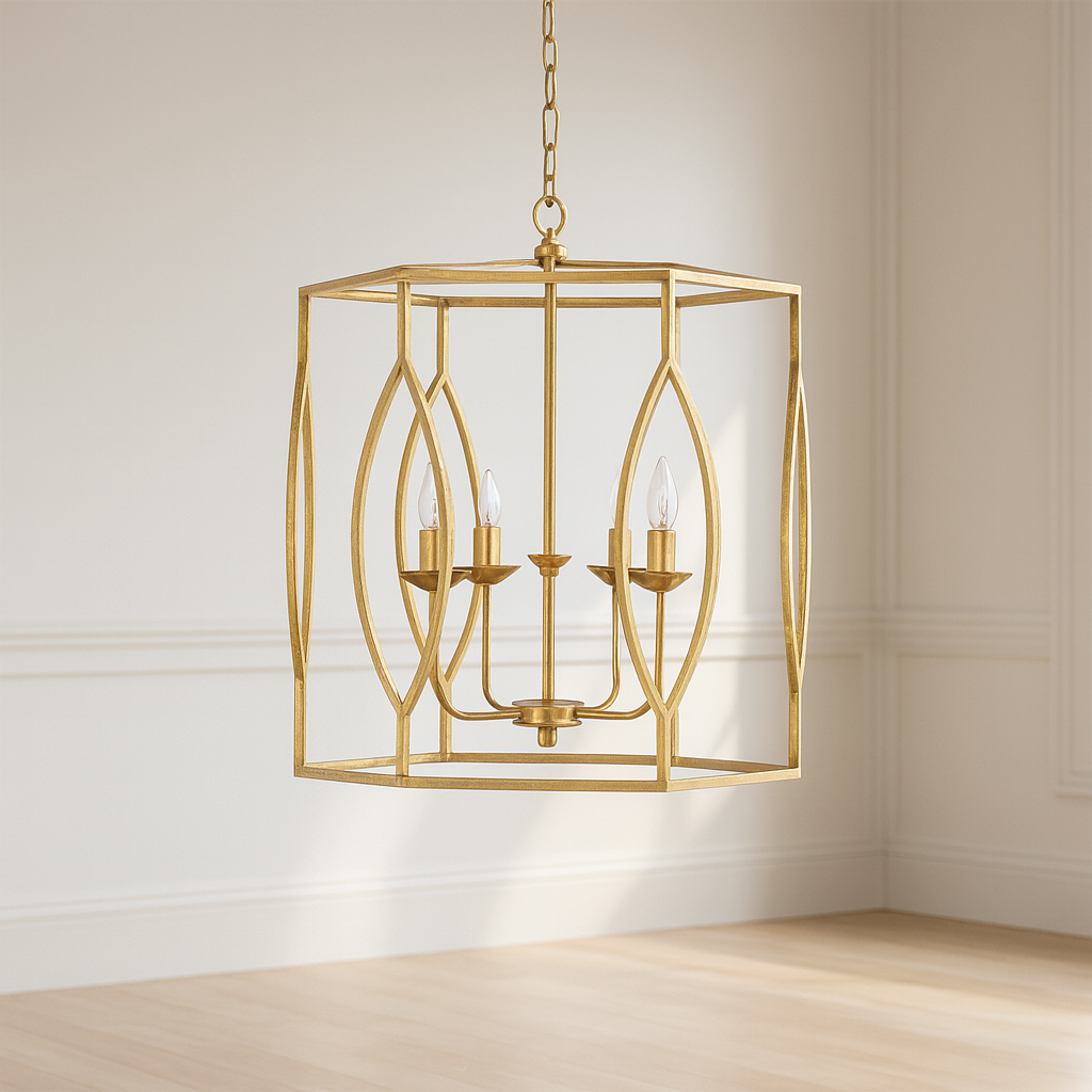 Gold Boxed Leaf Foil Finish Pendant Lamp