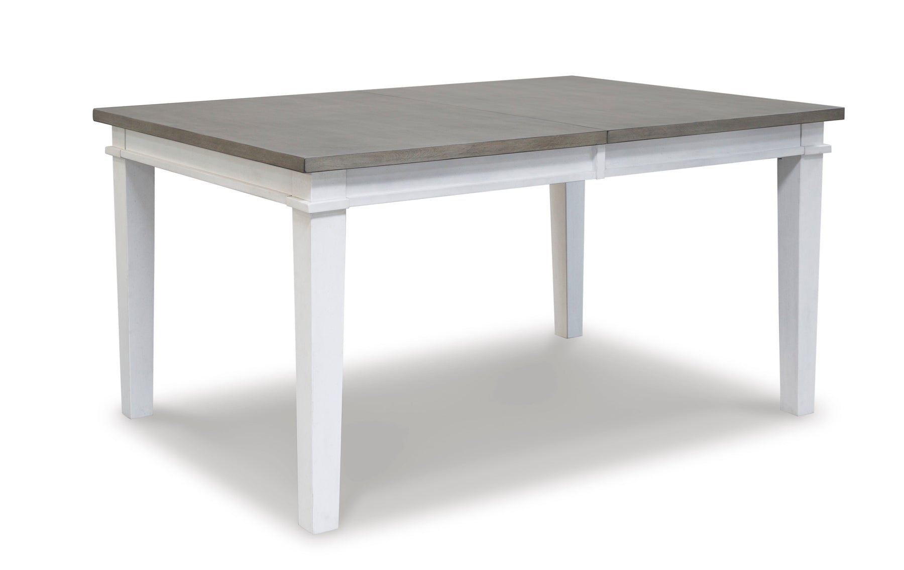 Embrace uncluttered character. This dining extension table emphasizes sheer simplicity with its clean-lined form and sleek self-storing leaf. Tranquil neutrals create a soothing two-tone finish. Designed to complement aesthetics from minimalist to modern farmhouse, this table is a simply striking feast for the eyes.