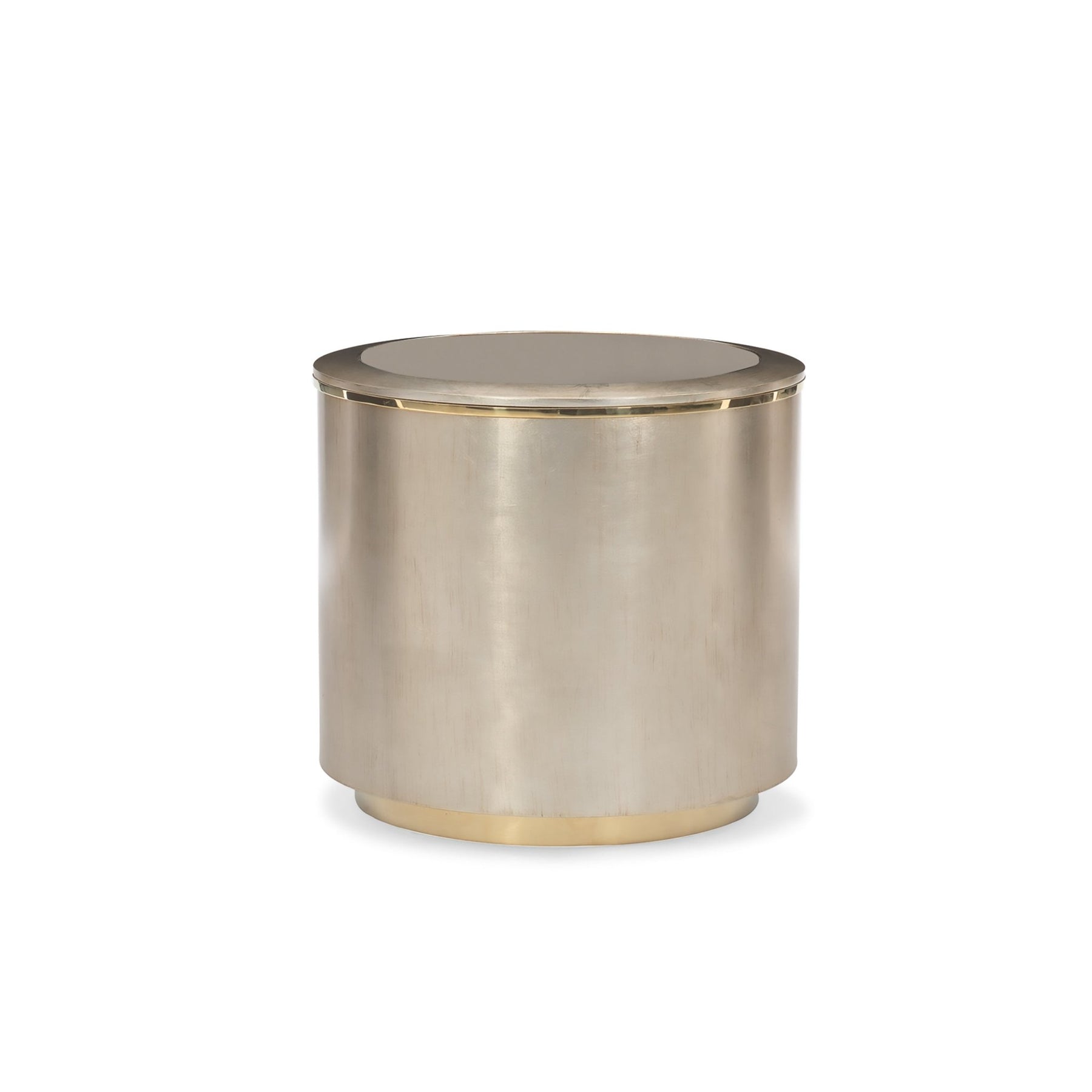 A striking focal feature, this cocktail table mixes cool silver leaf tones with the warmth of gold for a look that’s bold and beautifully balanced. Features a reflective bronze mirror top to keep the look clean. Style as a side table, or bunch together with our Circle in Time cocktail table to create an alluring seating area.