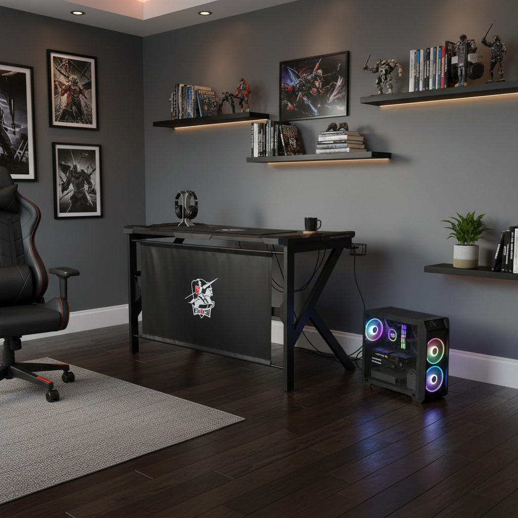 Professional Gaming Desk with Cup Holder, Headphone Stand, and Durable Metal Frame – Perfect for Gaming and Studying