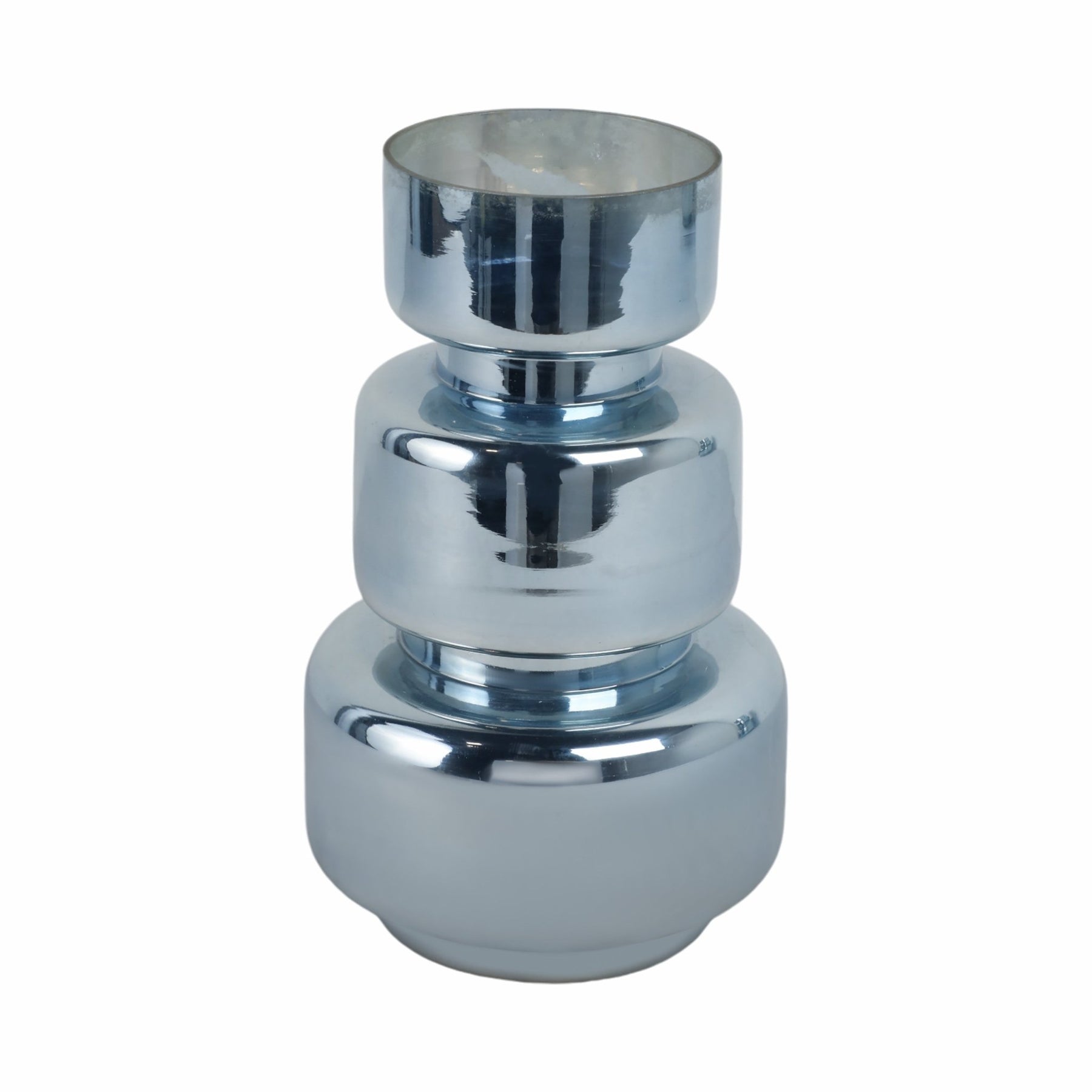 10" Stacked Cylinder Glass Vase, Blue Silver - Al Rugaib Furniture