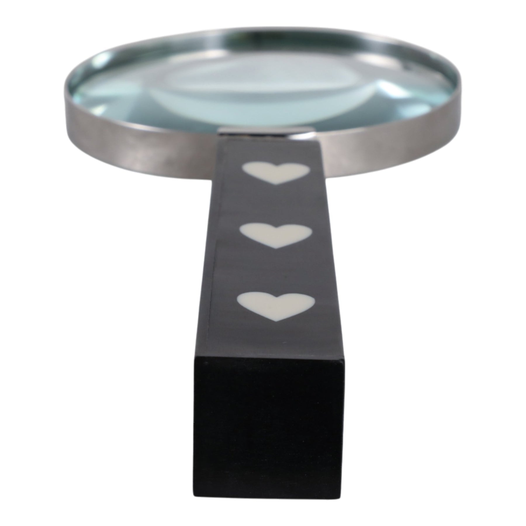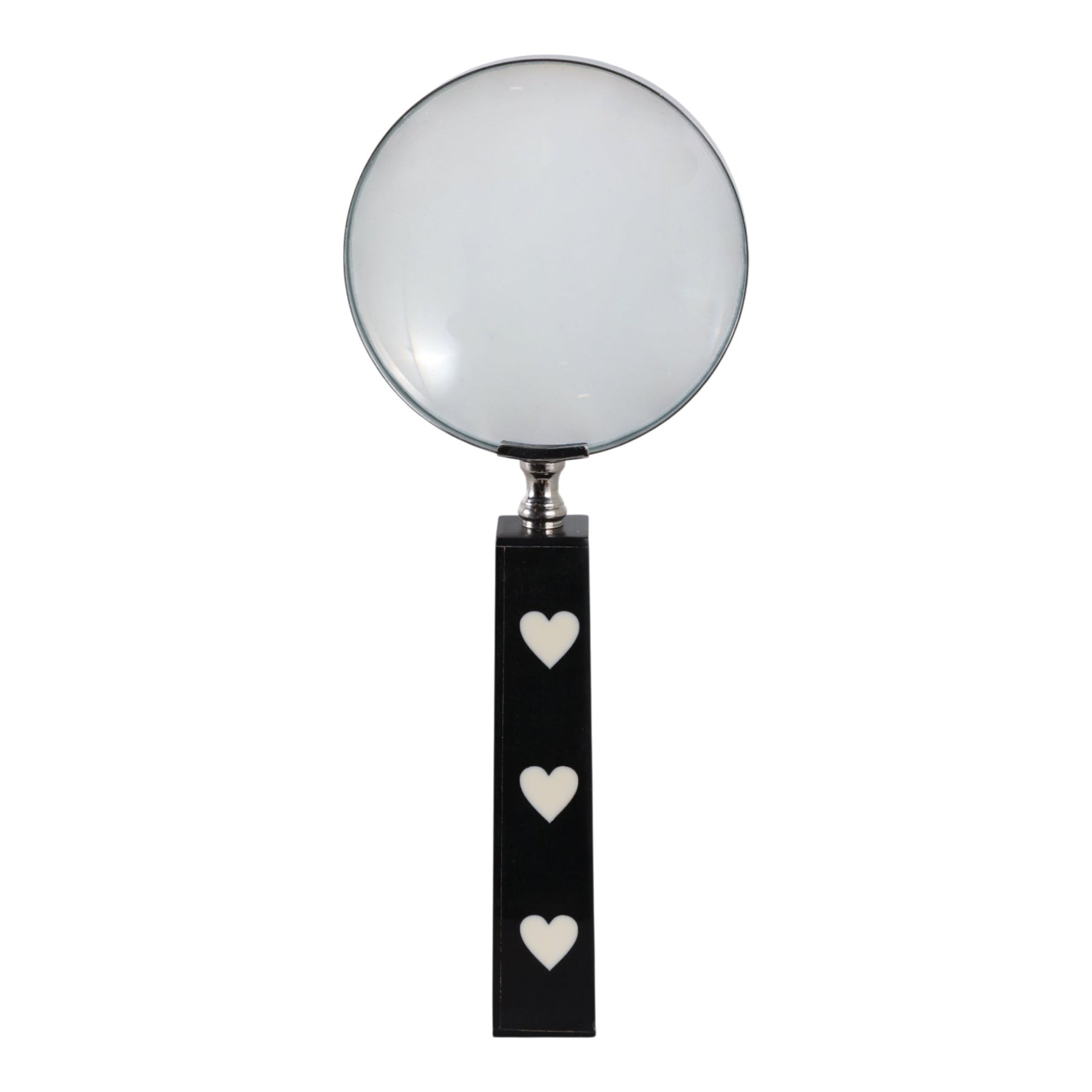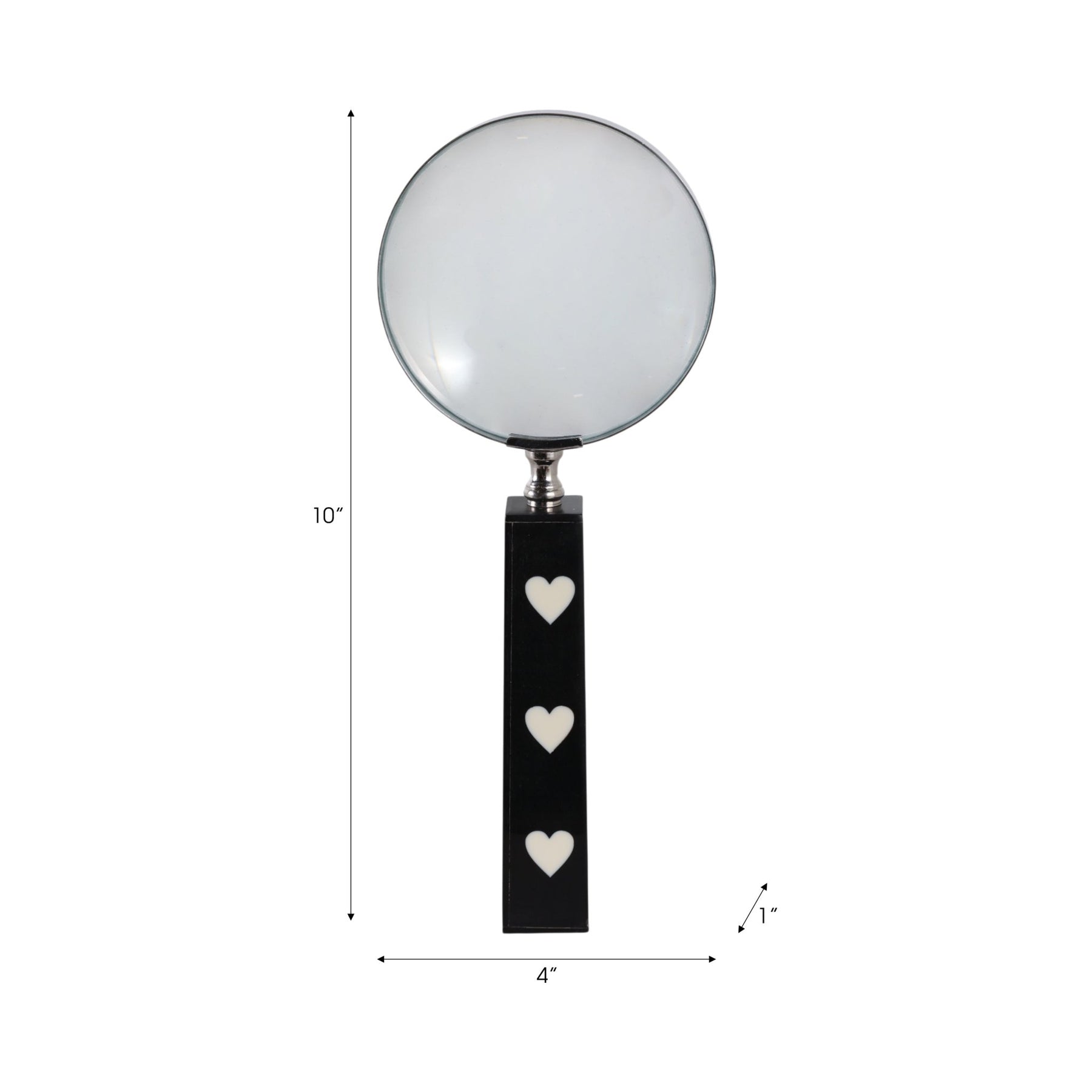 10x4" Hearts Handle Magnifying Glass, Black/white