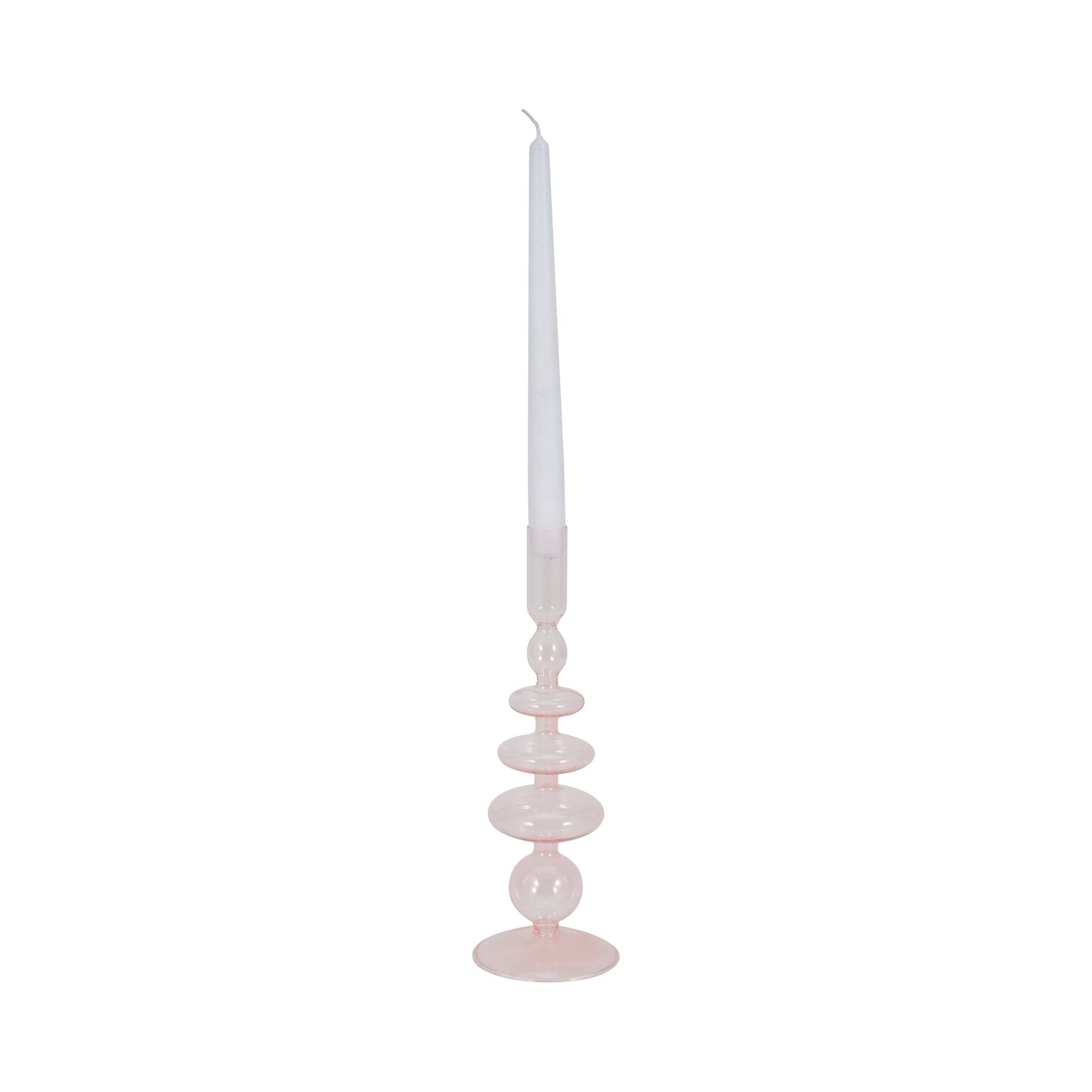 11" Vintage Glass Taper Candle Holder, Pink - Al Rugaib Furniture