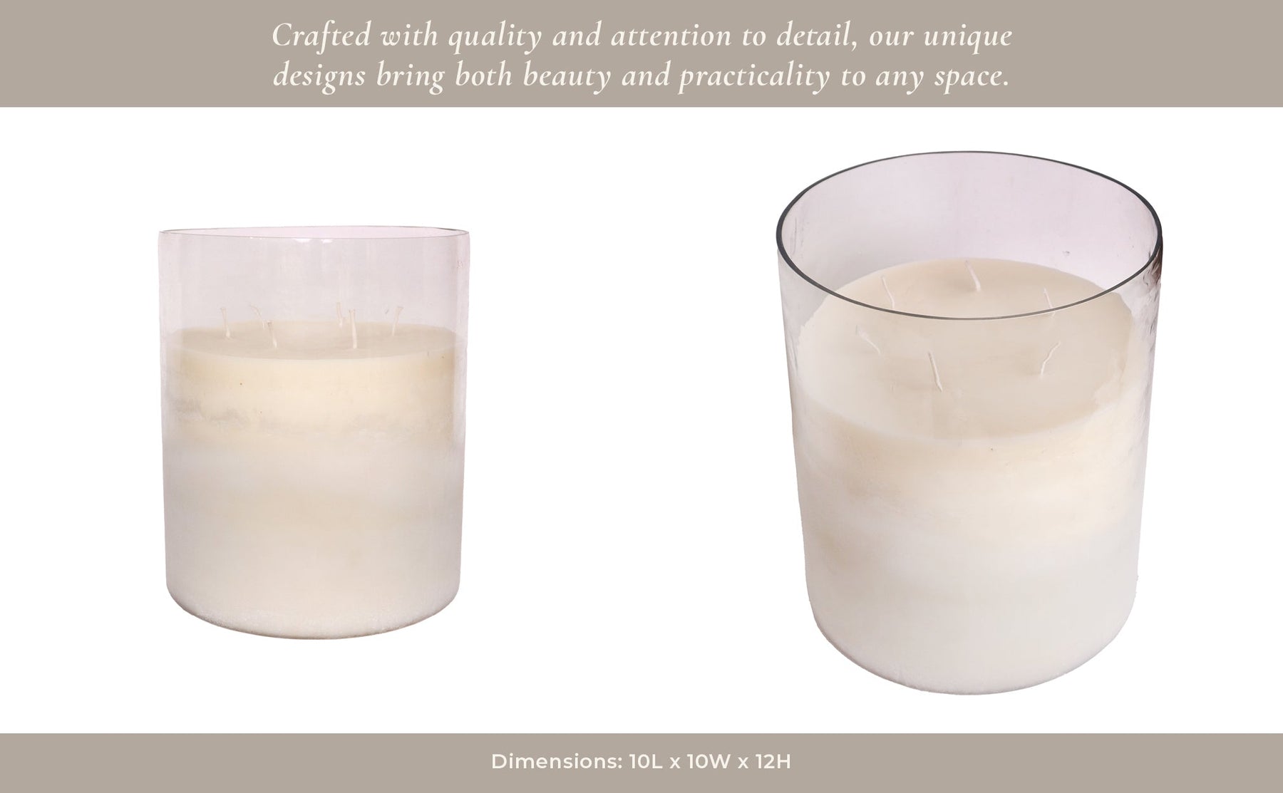 12x10" 349 Oz Jasmine Frosted Glass Candle, Clear