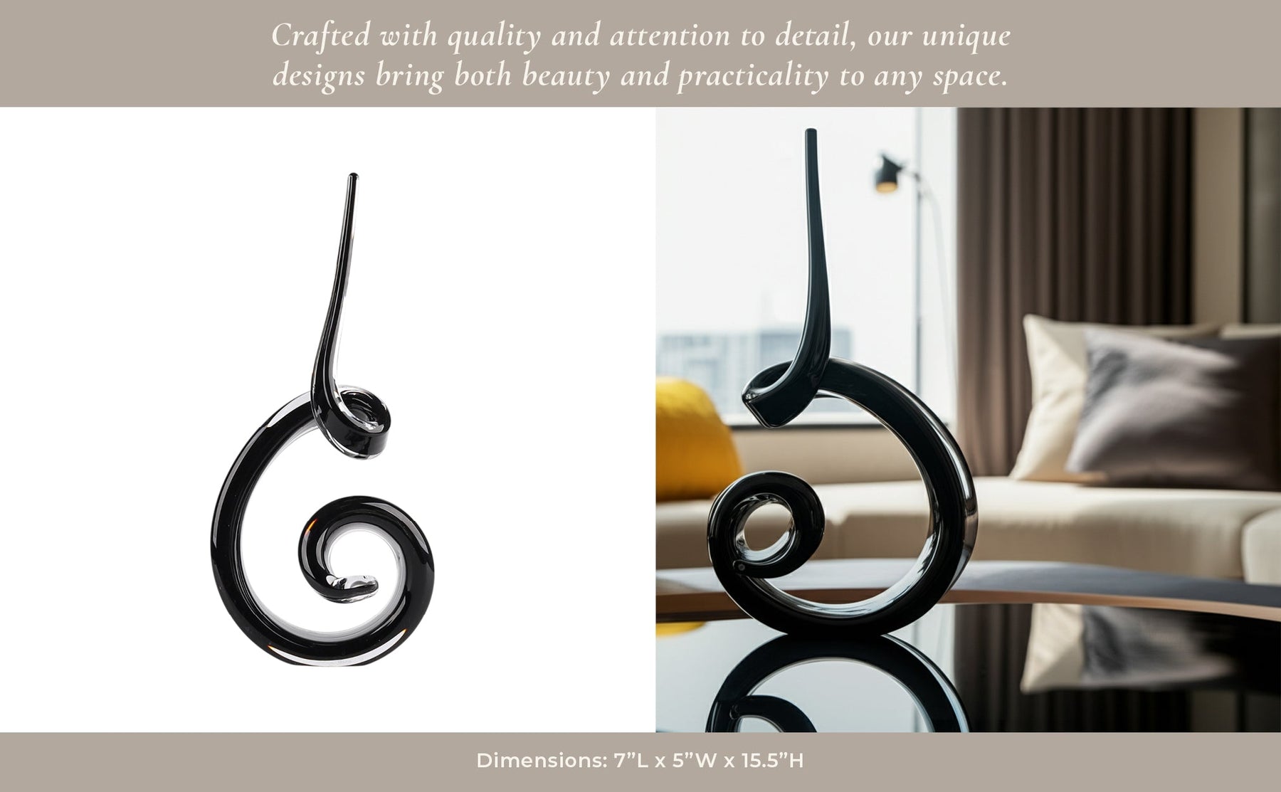 16" Kanah Black Glass Sculpture