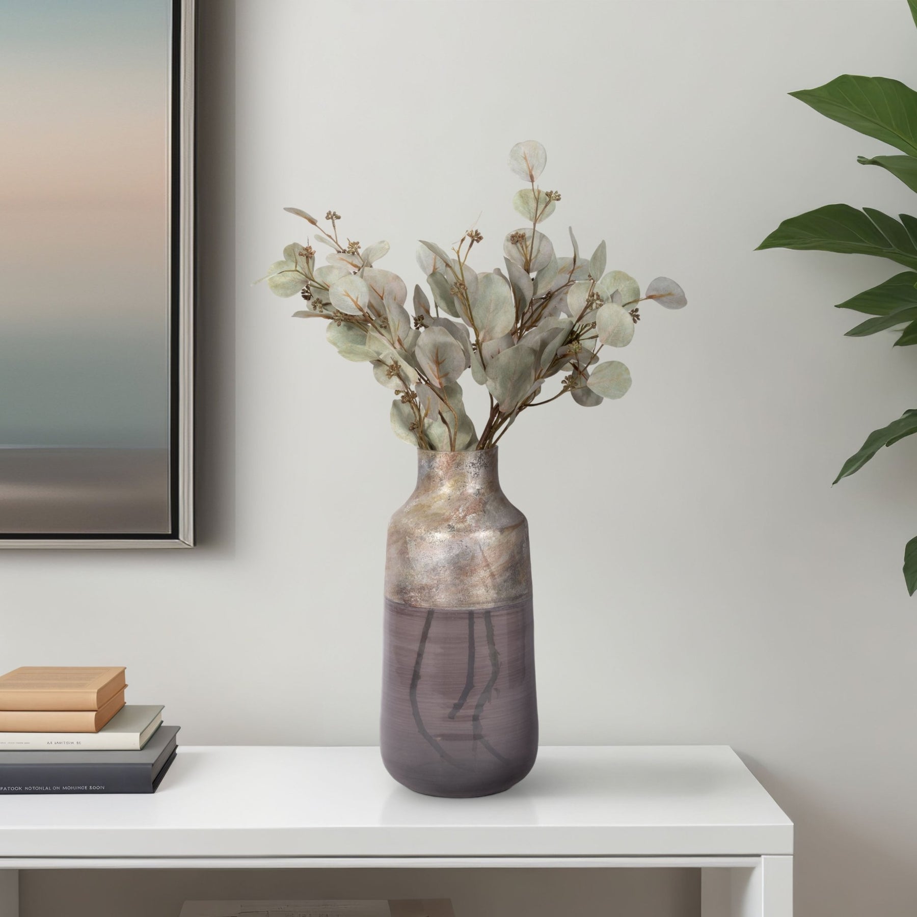 2 - tone Glass Vase, Grey Multi - Al Rugaib Furniture
