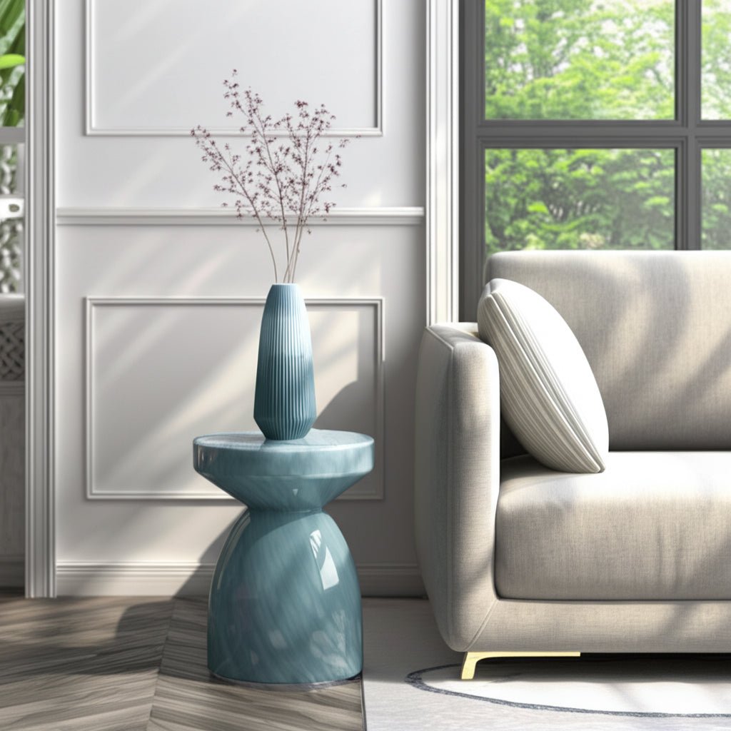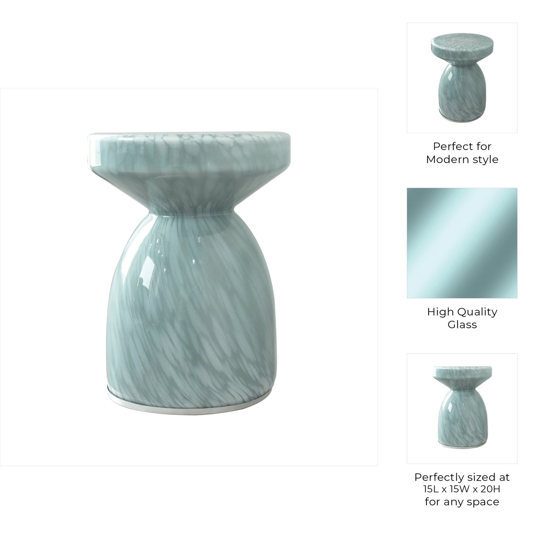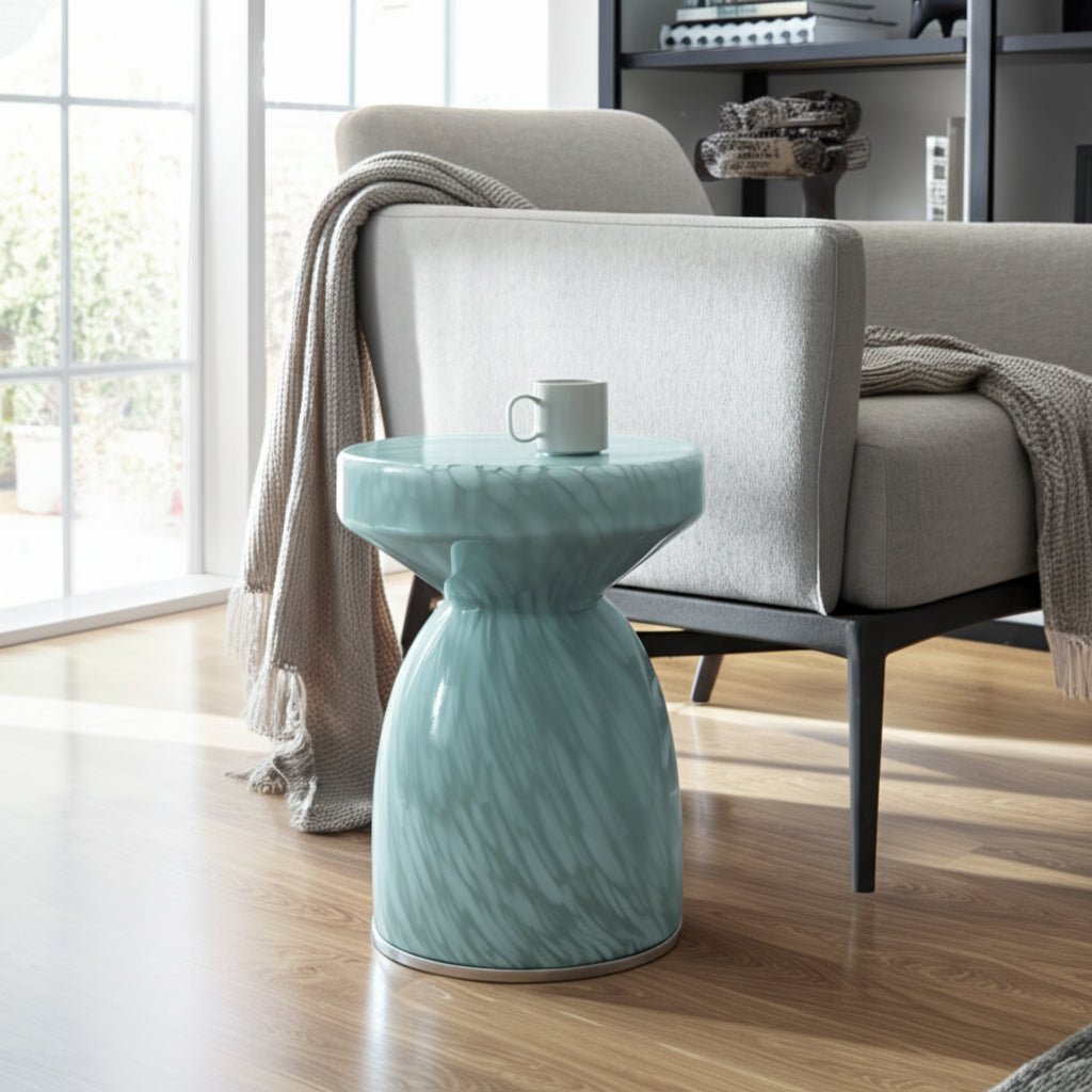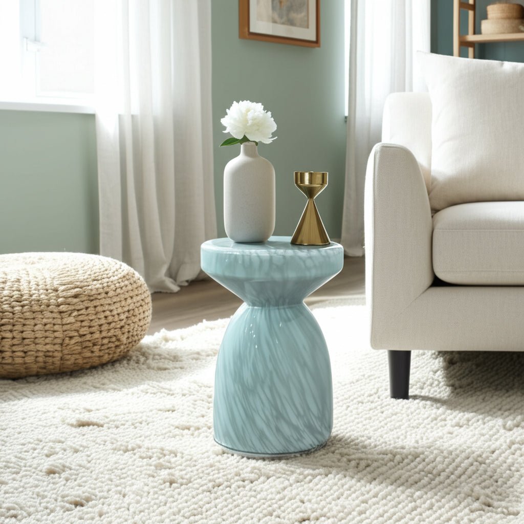 20" Mendoza Small Art Glass Table, Teal