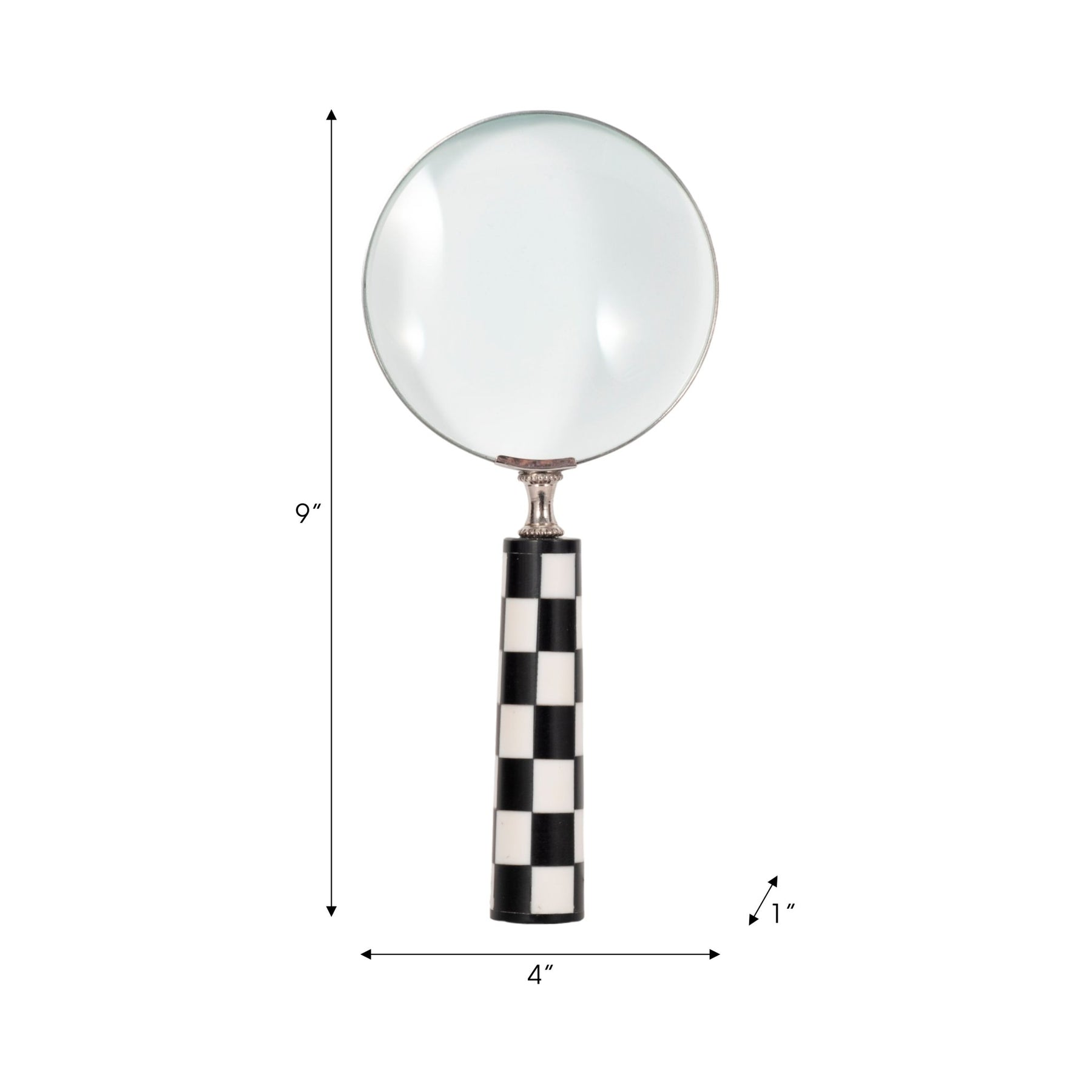 4" Checkerboard Handle Magnifying Glass, Black/whi - Al Rugaib Furniture