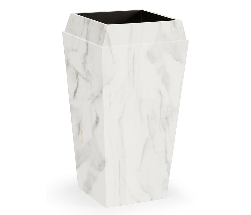 JC Outdoor - Biscayne Collection - Medium Square Faux White & Grey Marble Planter