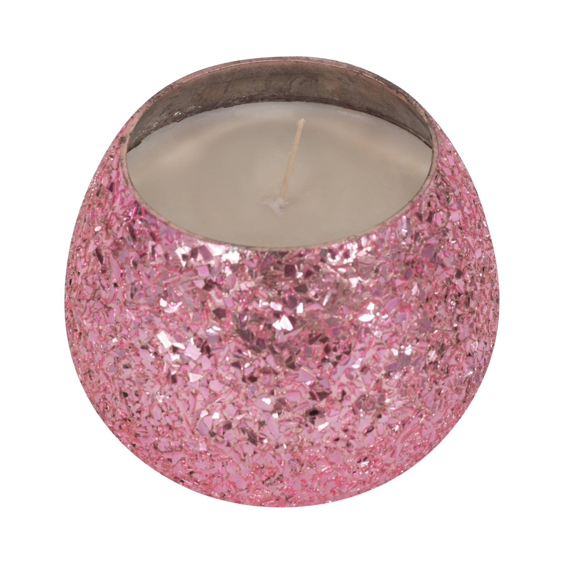 Glass, 4" 11 Oz Crackled Scented Candle, Pink