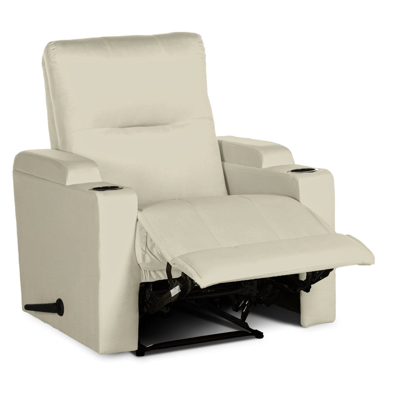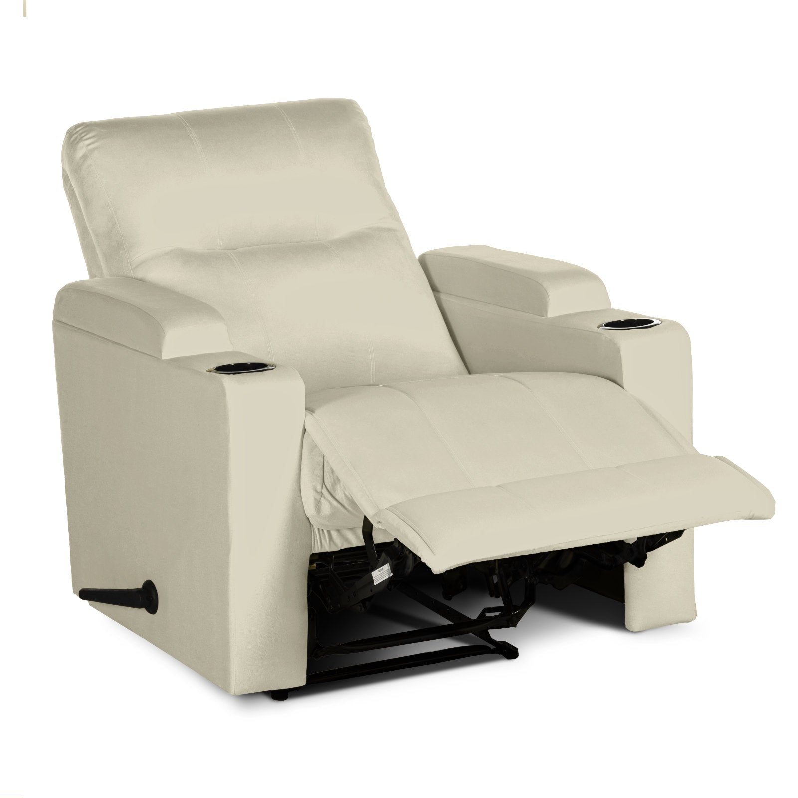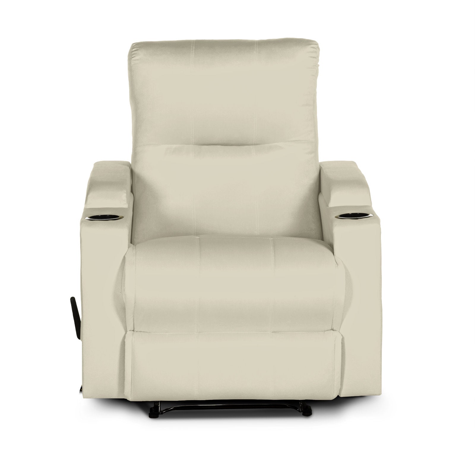 Cinematic Velvet Upholstered Rocking Recliner Chair With Bed Mode From In House - Light Beige - AB08